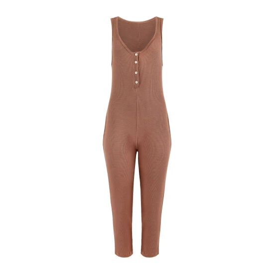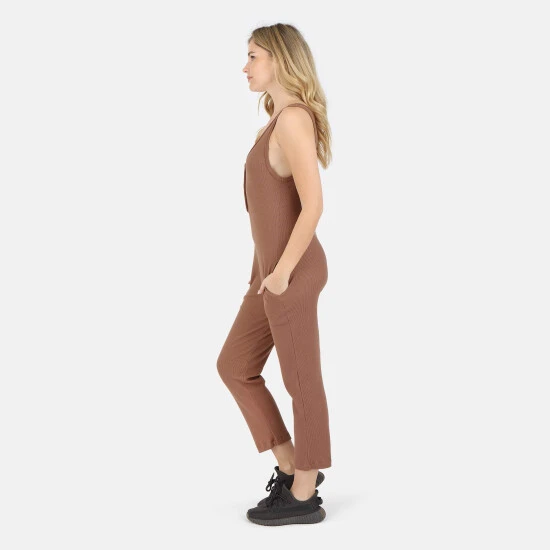 Lezat Costa Organic Cotton Waffle Thermal Pocketed Jumpsuit Jumpsuits & Rompers Cocoa