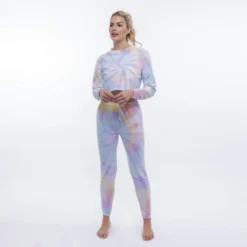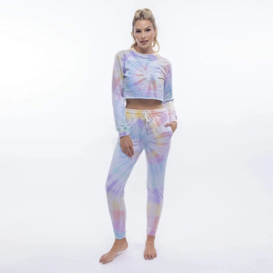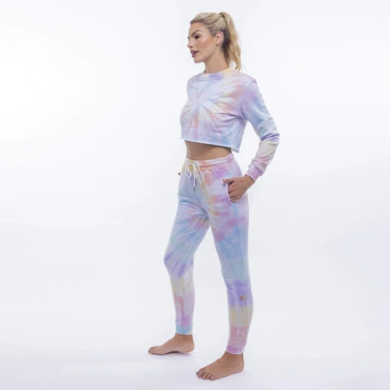 Easy-fitting lounge staple in a happy tie-dye pattern. This mid-rise sweat pant jogger is cut in the ultra-soft fabric you love and features a rib drawstring waistband and rib cuffs that hit at the ankle.