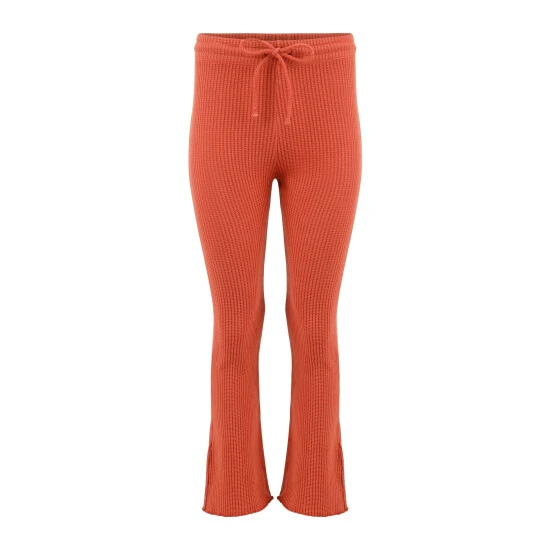 The fiona sets feature our cozy organic cotton waffle fabric. This unique fabric mixes texture with comfort. St retchy waffle-knit pull-on pants that flaunt your figure and end in ’90s-inspired lettuce-edge hems.