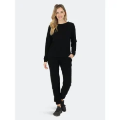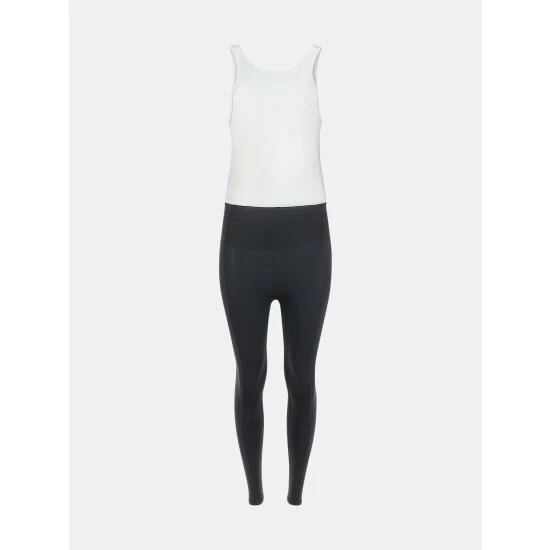Flow through your yoga class without distraction in a figure-skimming silhouette jumpsuit made from stretchy compression fabric that wicks away moisture for cool comfort and a soft modal top.