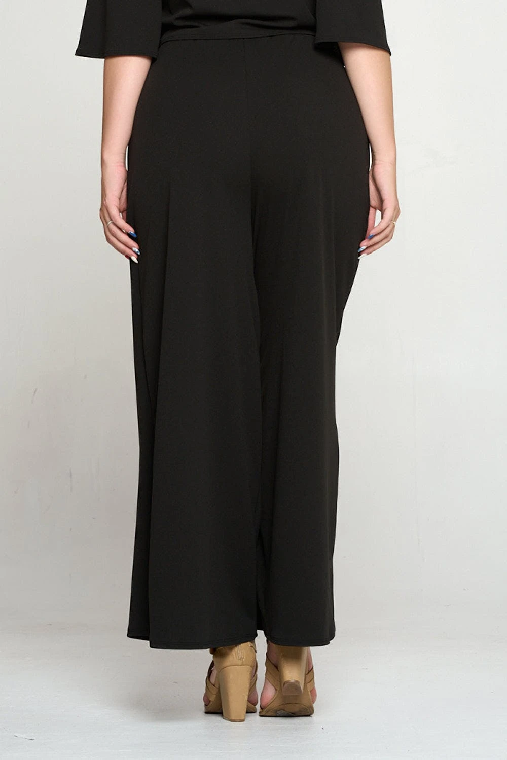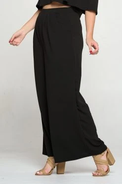 Pants featuring a flowy wide-leg design and comfortable stretch-infused fabric.
