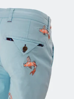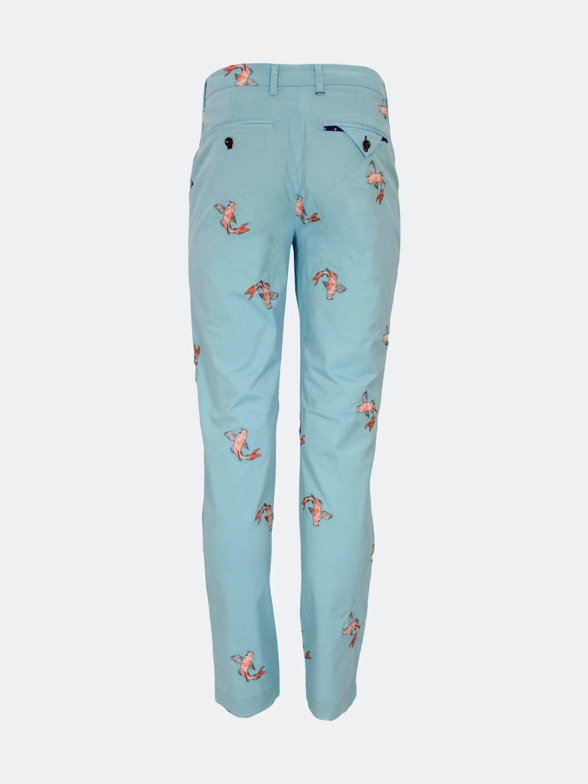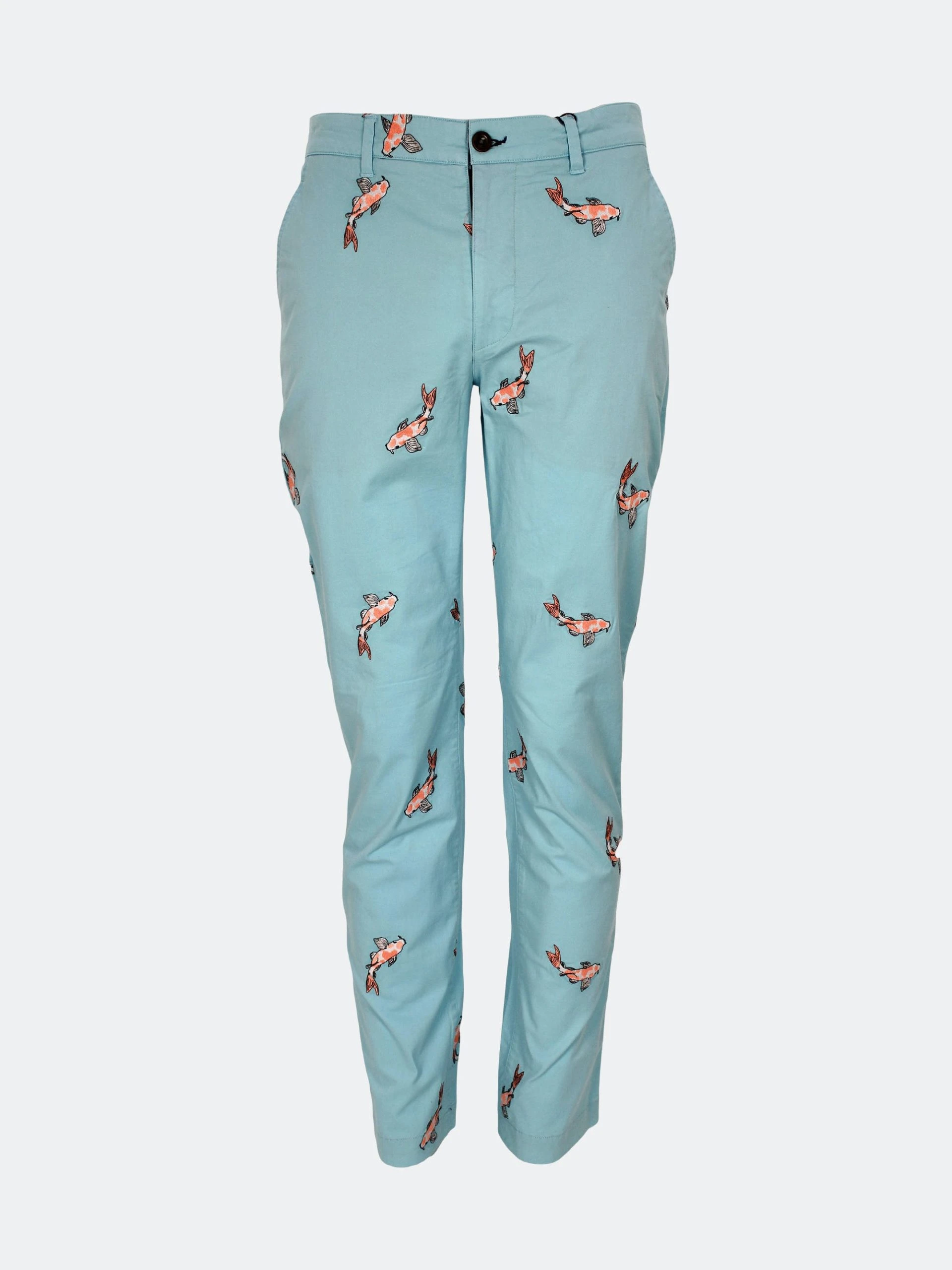Inspired to make an updated version of our classic chino, we introduce to you the Charles! This pant is made of a luxurious smooth butter fabric, but keeps the fit and comfort that our customers love. The intricately embroidered koi fish makes these pants a lot of fun to wear as a nod to our Japanese theme this season.