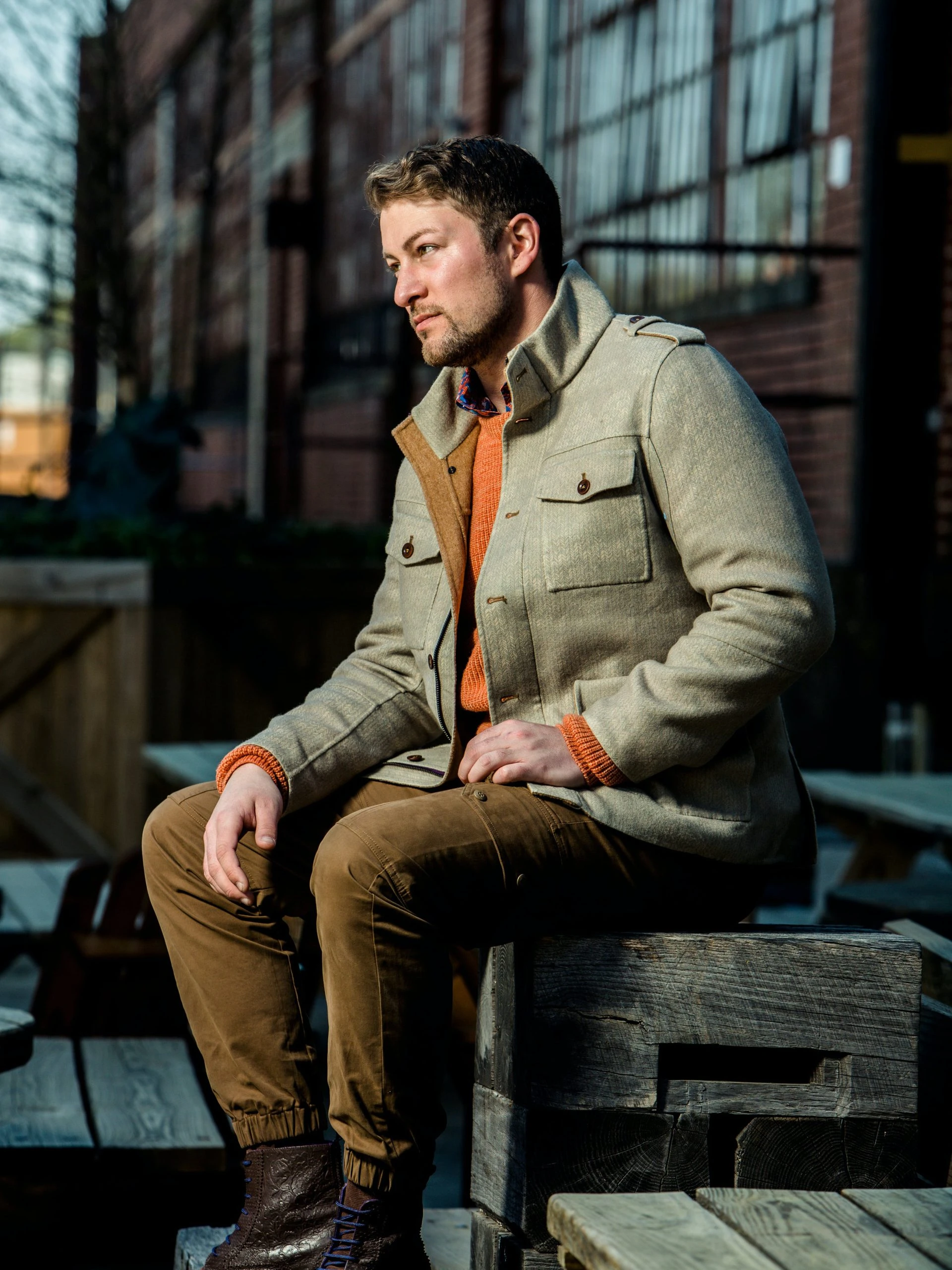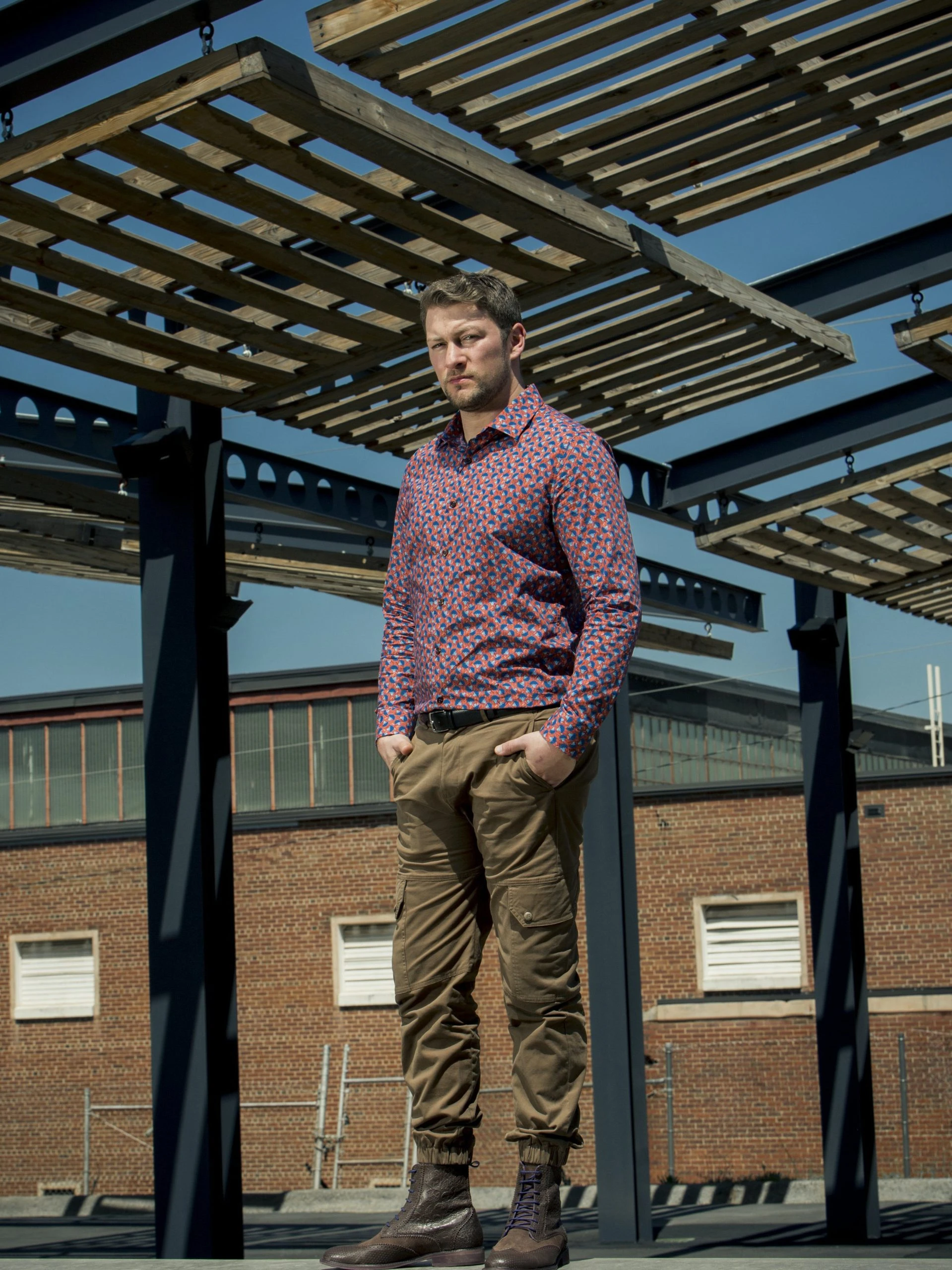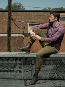 – Justin is wearing these pants with the Nigel shirt in Brocolini Chevron Lava