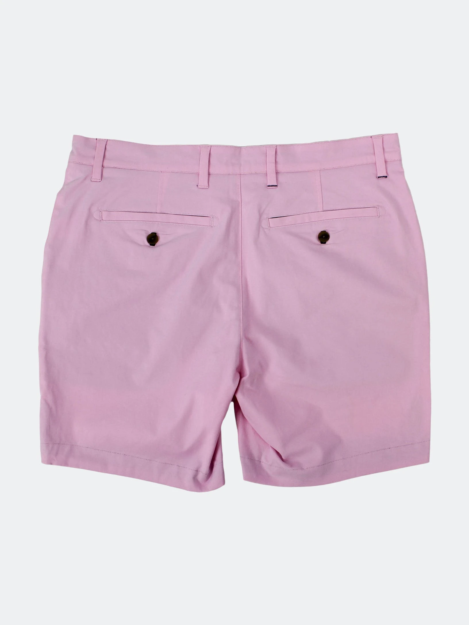 Washed stretch peached cotton short with printed contrast interior.7 inch inseam