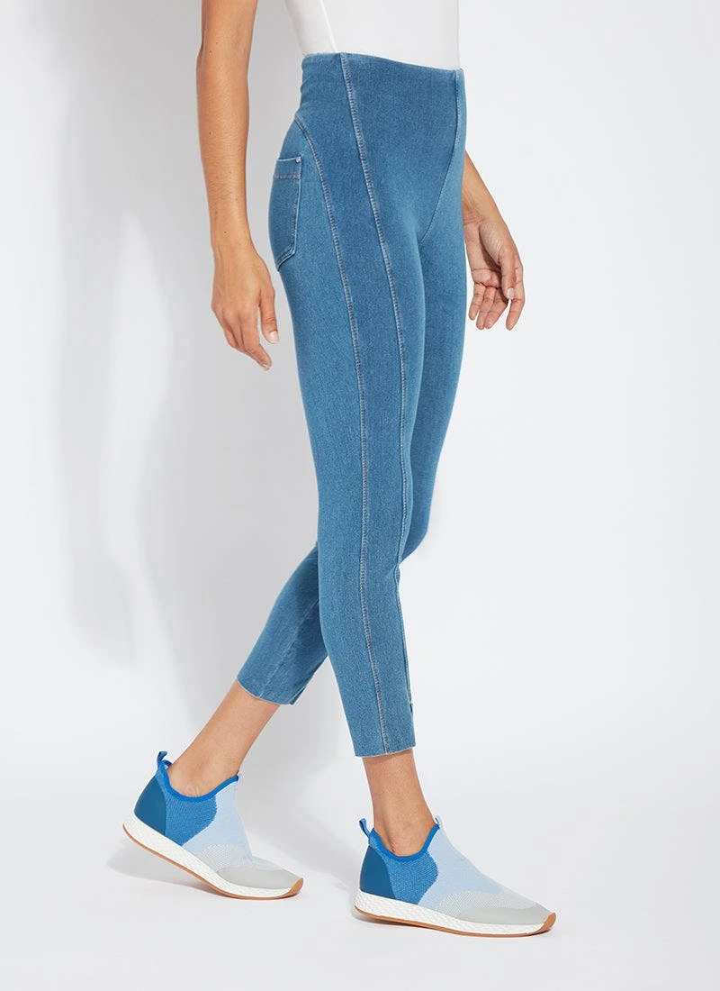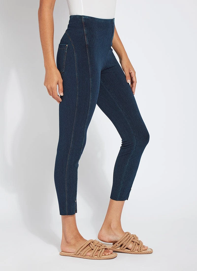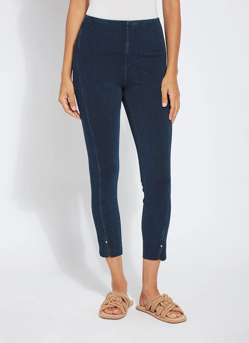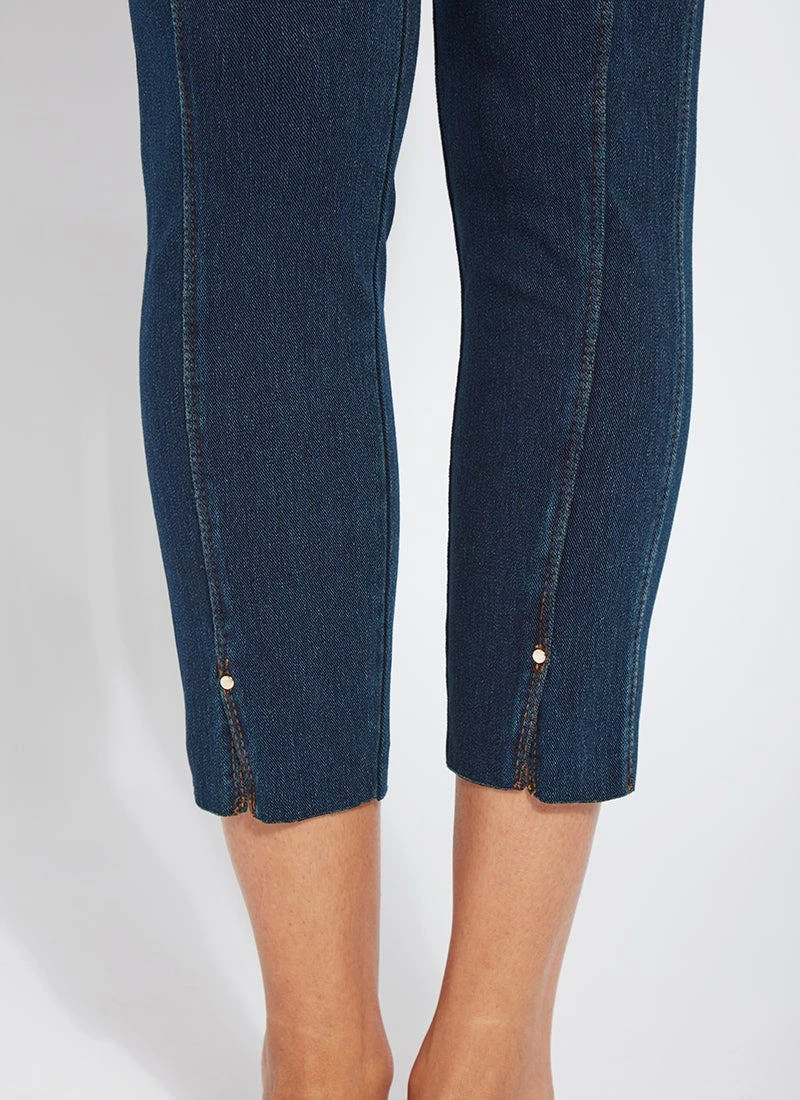 Smartly fashioned from 4-way stretch “cool”-ing knit denim – a fabric made with an eco-friendly, synthetic nylon fiber that’s manufactured using recycled water and sustainable processes – our angelonia crop touts anatomical seaming and a concealed patented waistband for your most flattering fit. These body-hugging crops, which help keep you cool during warmer months, showcase a rounded back yoke, back patch pockets and front, raw-edge hem slits with shiny, light-gold studs. Pull them on with a microfiber tank, slip into nude slides, grab your cropped vegan moto jacket, and seize the day. “Cool”-ing knit denim To create lyssé’s “cool”-ing knit denim, we reinvented our traditional knit denim by removing some of the cotton, increasing the percentage of spandex, and adding an eco-friendly, synthetic nylon fiber that’s manufactured using recycled water and sustainable processes. The addition of this eco-friendly nylon creates a high-performance fabric that immediately cools skin on contact and continues to diffuse heat to keep skin cool and dry. “cool”-ing knit denim, which contains 31 percent eco-friendly nylon, retains its cooling effect even after multiple washes. Delivering comfortable 4-way stretch, moisture wicking and easy care, “cool”-ing knit denim is the perfect cooling fabric for hot summer days.