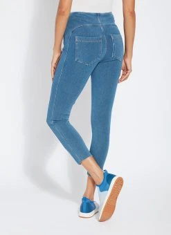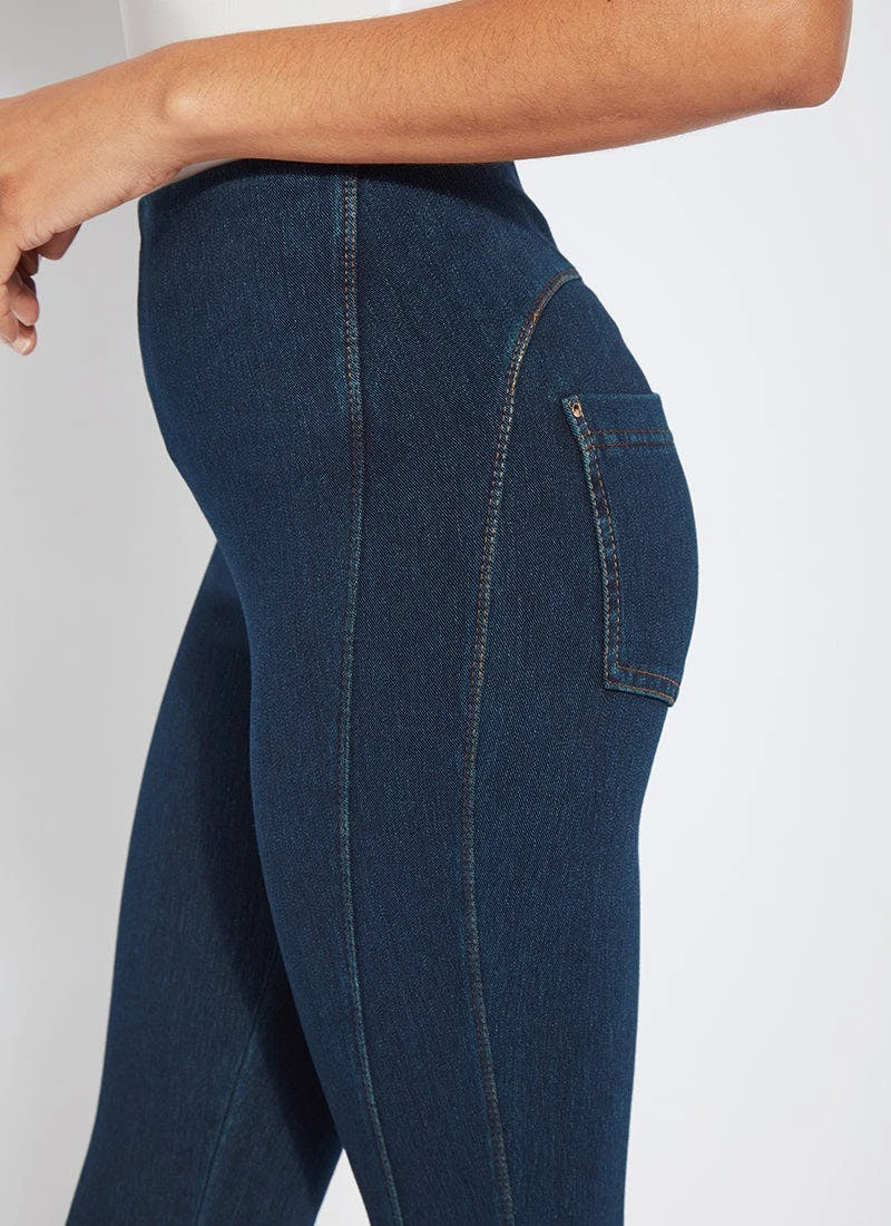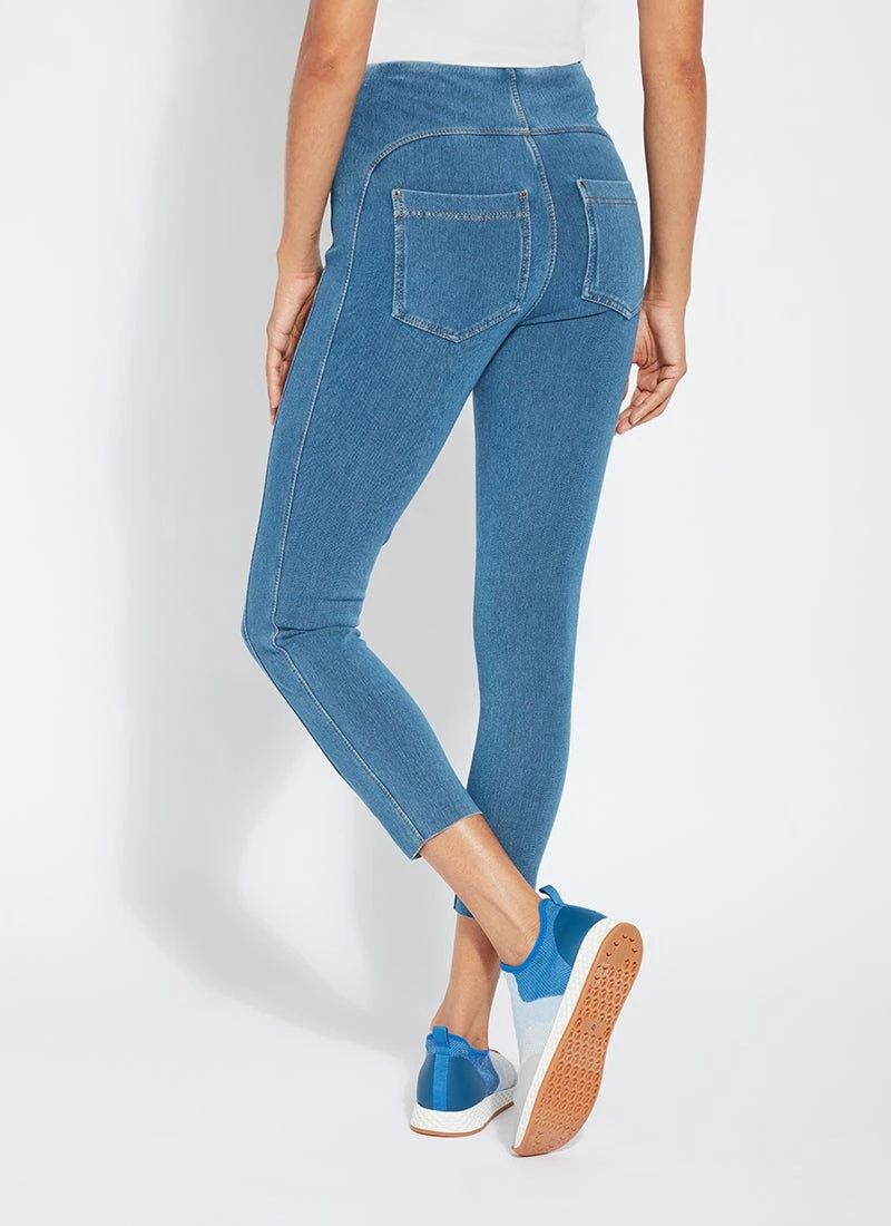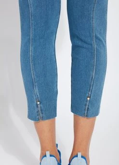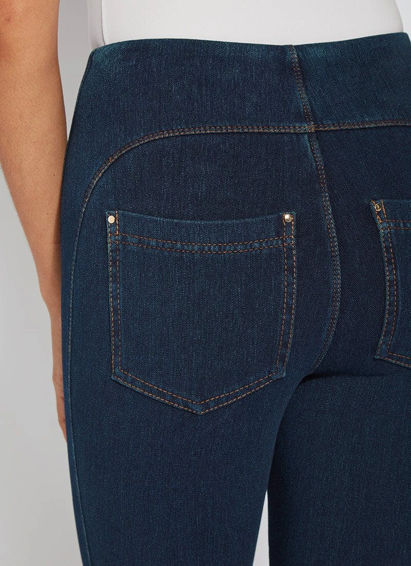 Smartly fashioned from 4-way stretch “cool”-ing knit denim – a fabric made with an eco-friendly, synthetic nylon fiber that’s manufactured using recycled water and sustainable processes – our angelonia crop touts anatomical seaming and a concealed patented waistband for your most flattering fit. These body-hugging crops, which help keep you cool during warmer months, showcase a rounded back yoke, back patch pockets and front, raw-edge hem slits with shiny, light-gold studs. Pull them on with a microfiber tank, slip into nude slides, grab your cropped vegan moto jacket, and seize the day. “Cool”-ing knit denim To create lyssé’s “cool”-ing knit denim, we reinvented our traditional knit denim by removing some of the cotton, increasing the percentage of spandex, and adding an eco-friendly, synthetic nylon fiber that’s manufactured using recycled water and sustainable processes. The addition of this eco-friendly nylon creates a high-performance fabric that immediately cools skin on contact and continues to diffuse heat to keep skin cool and dry. “cool”-ing knit denim, which contains 31 percent eco-friendly nylon, retains its cooling effect even after multiple washes. Delivering comfortable 4-way stretch, moisture wicking and easy care, “cool”-ing knit denim is the perfect cooling fabric for hot summer days.