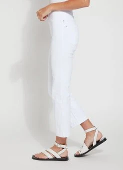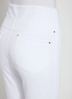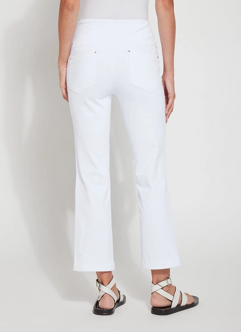 Offering a 27-inch length with a slight leg flare, the Ankle Denim Baby Bootcut is an ideal pant for petite women. Made from 4-way stretch Knit Denim, these ankle-length bootcut pants offer a concealed patented waistband, back patch pockets with metal grommets and anatomical seaming that lifts and contours. The Ankle Denim Baby Bootcut jean skims the hips and thighs before falling into an open bootcut hem. Style casually with a Black Classic Top and sandals, or for a dressier look, partner with an ivory mock-neck top, black heels and faux leather fringed jacket.