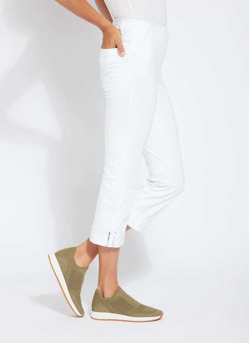“cool-ing” crop boyfriend denim If you love our boyfriends, then you’ll really love our new “cool-ing” crop boyfriends. Crafted from eco-friendly “cool”-ing knit denim – a fabric that retains its cooling effect to keep you cool during warmer months. These cropped boyfriends deliver comfortable 4x stretch and feature parallel side seams, a concealed patented waistband, beltloops, back patch pockets, anatomical front seaming and wide cuffs with printed microfiber double-binding. Wear them cuffed or uncuffed with our tucked classic top and leather clogs. “Cool”-ing knit denim To create lyssé’s “cool”-ing knit denim, we reinvented our traditional knit denim by removing some of the cotton, increasing the percentage of spandex, and adding an eco-friendly, synthetic nylon fiber that’s manufactured using recycled water and sustainable processes. The addition of this eco-friendly nylon creates a high-performance fabric that immediately cools skin on contact and continues to diffuse heat to keep skin cool and dry. “cool”-ing knit denim, which contains 31 percent eco-friendly nylon, retains its cooling effect even after multiple washes. Delivering comfortable 4-way stretch, moisture wicking and easy care, “cool”-ing knit denim is the perfect cooling fabric for hot summer days.