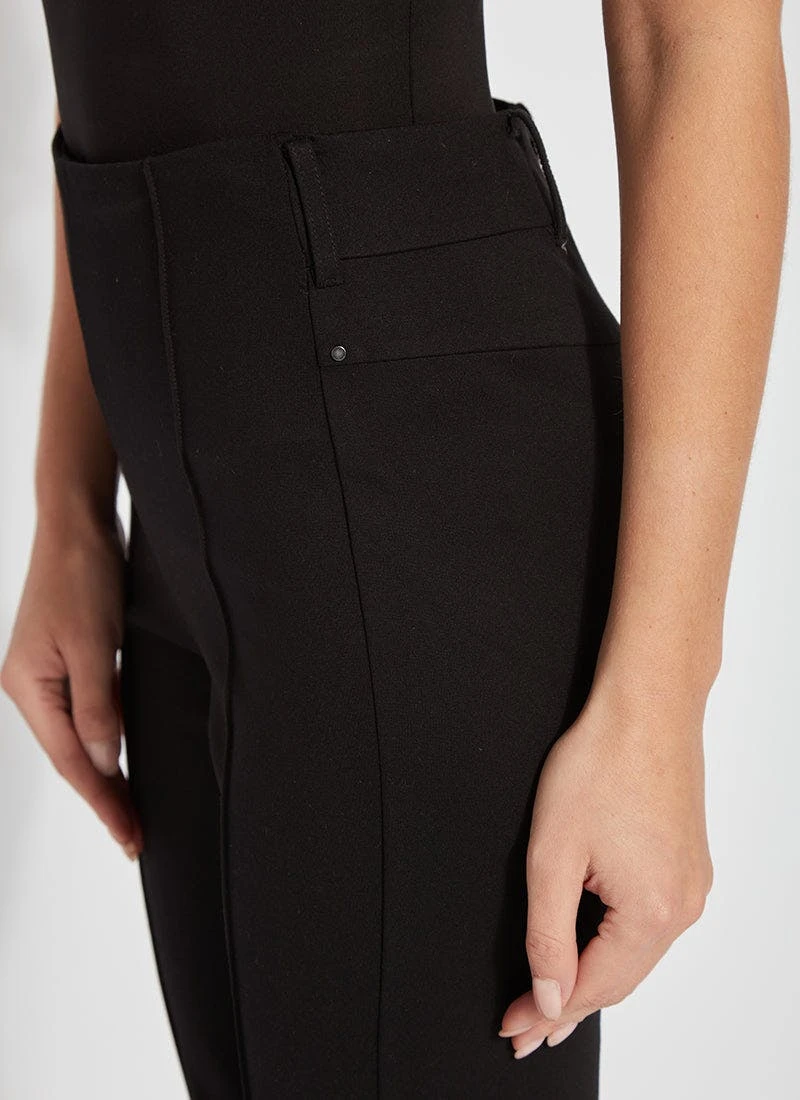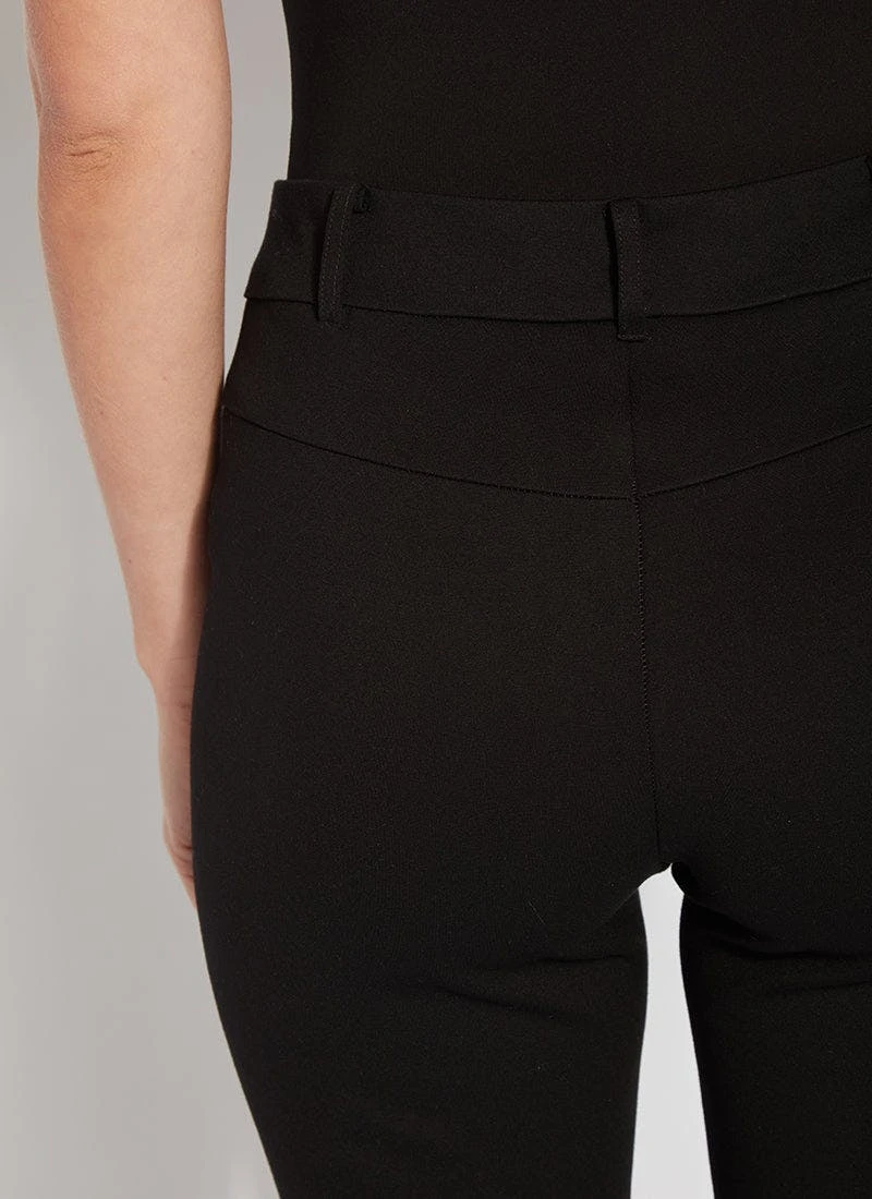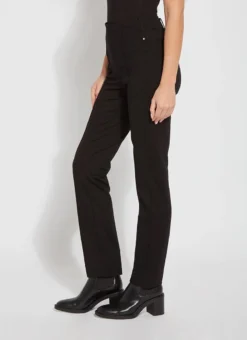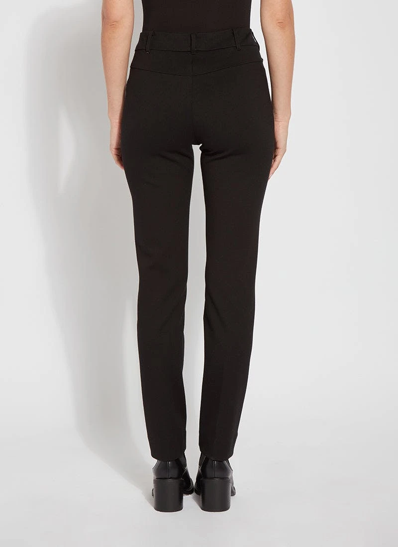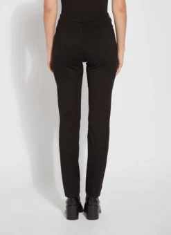 Showcasing lean lines and crafted from stretch ponte. As flattering as yoga pants but perfect for work or leisure, the premium tall legging features anatomical seaming for rear contouring and lift, a smoothing concealed patented waistband, and center-front pin tucks for a long, slim look. Partner these tall black leggings with connie slim button down, antique jacket and black canvas slip-ons.