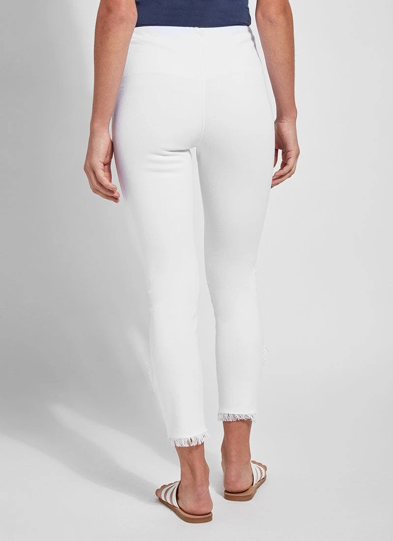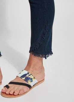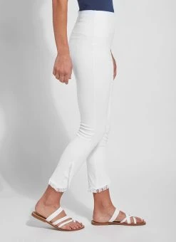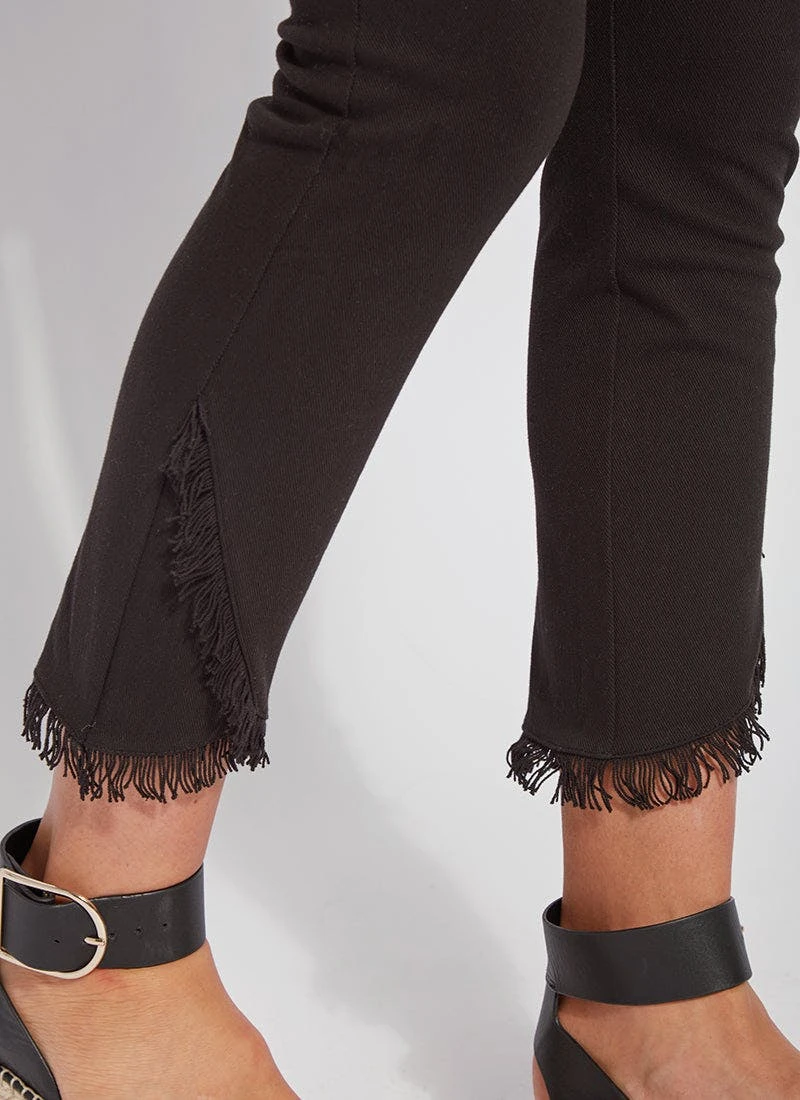 Glide through the day in these slimming, skinny-fit jeans with fringed tulip hem! Developed from 4-way stretch knit denim to comfortably support and lengthen, the fringe tulip hem denim is a must-have closet essential. Adore them with a gathered white linen blouse and nude slides!