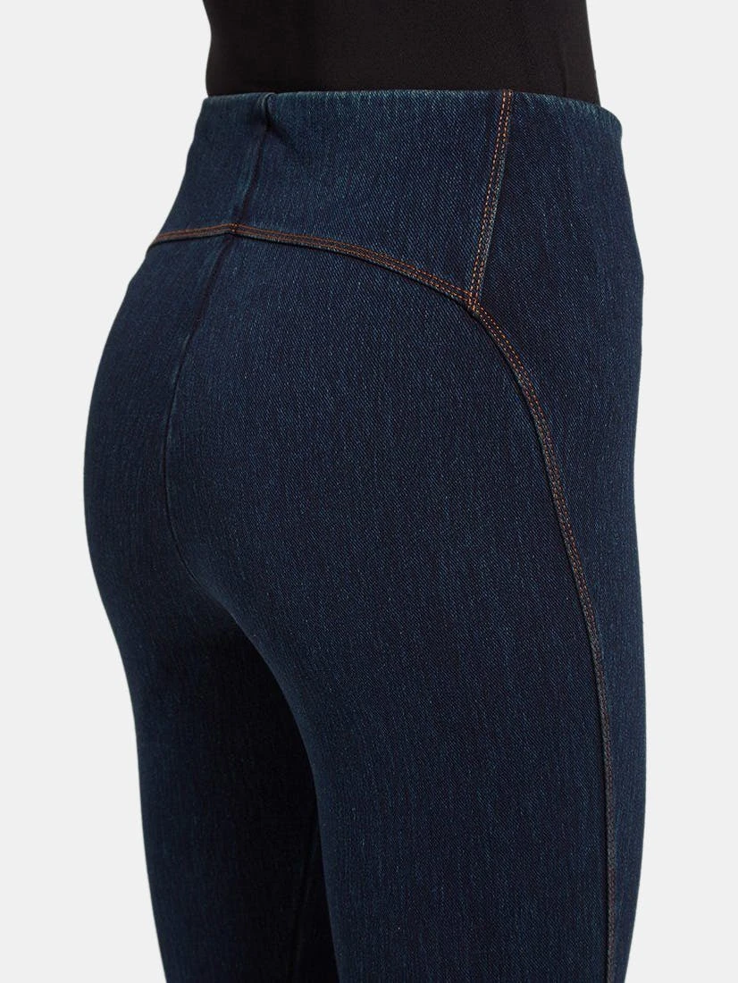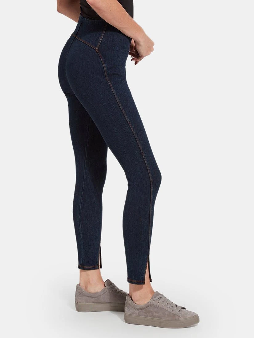 These full-length skinnies, in stretchy Knit Denim, offer undying comfort, a front split at the ankle, and tobacco topstitching. Featuring a concealed patented waistband and 360° Smoothing, the Kara Split Legging delivers a slimming, body-hugging fit. On lazy Saturday mornings, pull them on with an oversized sweatshirt and enjoy your morning coffee curled up fireside.