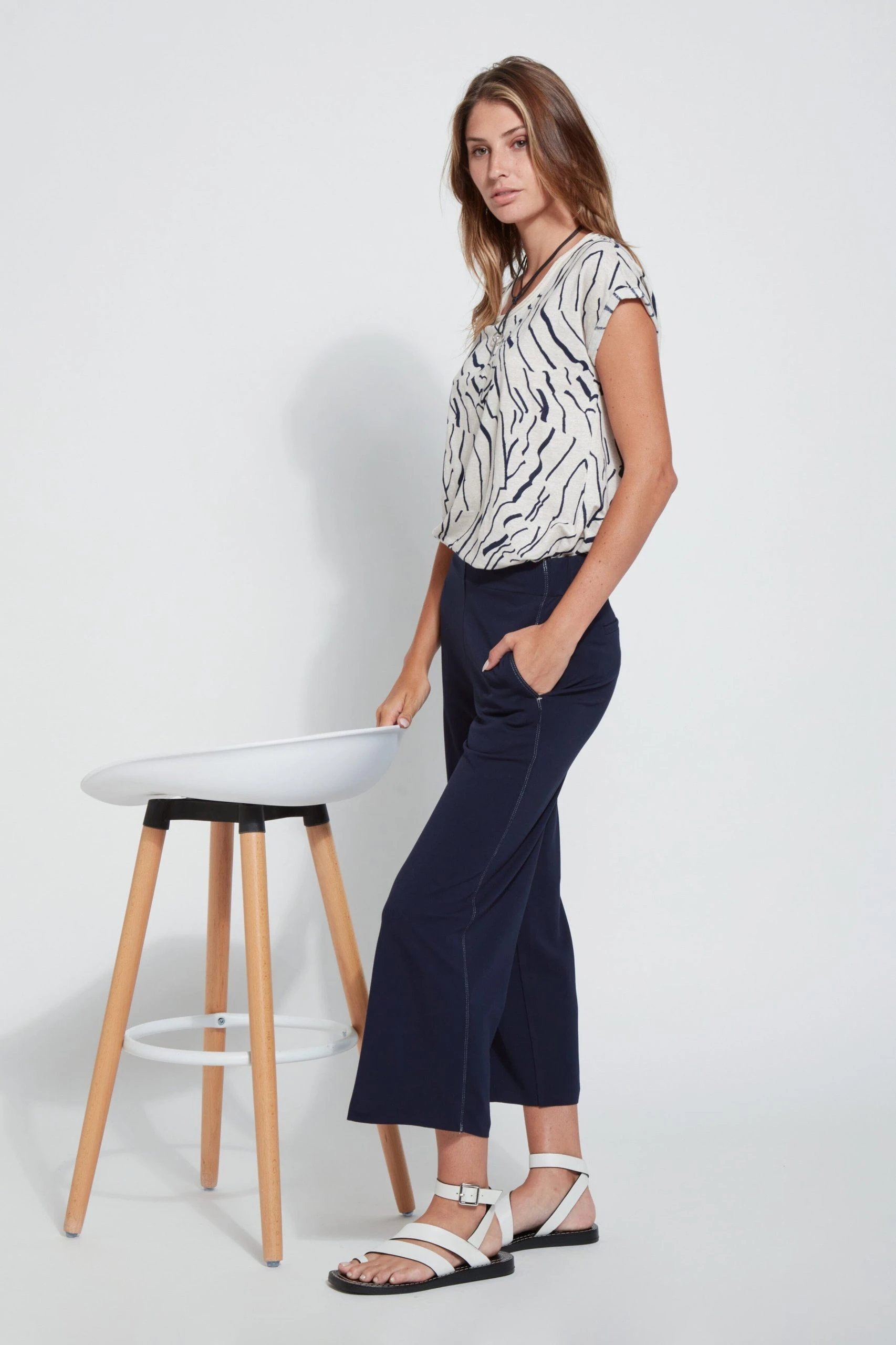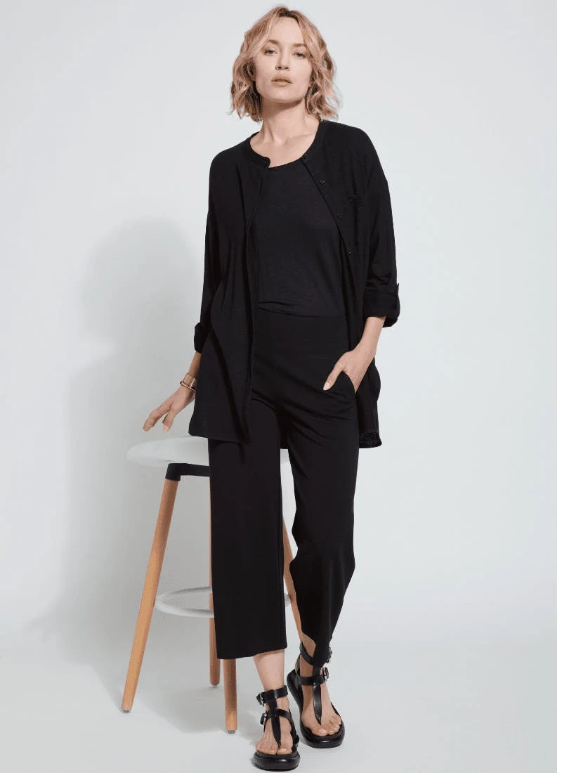 The Leila Crop Relaxed Wide Leg, made from 4-way stretch Lightweight Ponte, features a roomy, relaxed fit, elasticated back waistband and welt pockets, front side pockets, and seaming from front to back for a slimmer look. The Leila Crop Relaxed Wide Leg is also simple to shorten thanks to a raw-edge hem. Pull them on with classic top and sandals.
