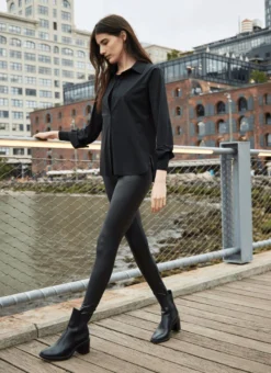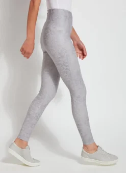 Offering pleasant 4-way stretch and a waist that’s 1.5 inches higher than Lyssé’s standard, the Matilda Foil Legging is crafted from a lightweight, yet contemporary Foiled Vegan Leather. Crafted using a foil lamination technique on matte Vegan Leather, these full-length leggings showcase a discreet camouflage print. Pull them on with a white microfiber top and sneakers for an elevated, yet casual look.