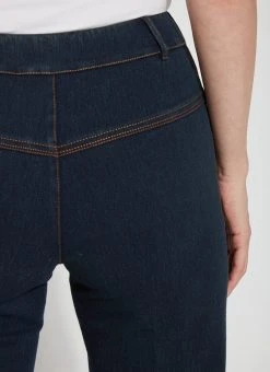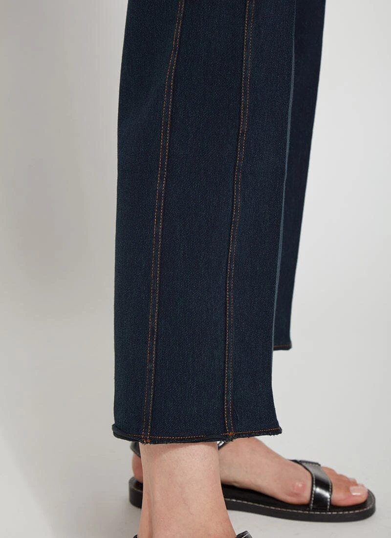 Casual meets tailored with the Payton Wide Leg Crop, made from 4-way stretch Knit Denim. These wide-leg jeans offer a flattering, concealed patented waistband, faux welt side pockets, back yoke and waist seam, and a clean front. Parallel seams run from waist to hem for a slimming look and the hem features an inserted raw edge at the bottom. Partner them, in White, with the Classic Top, in Ultra Blue, and white sandals.