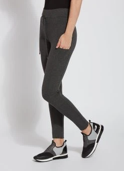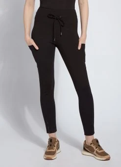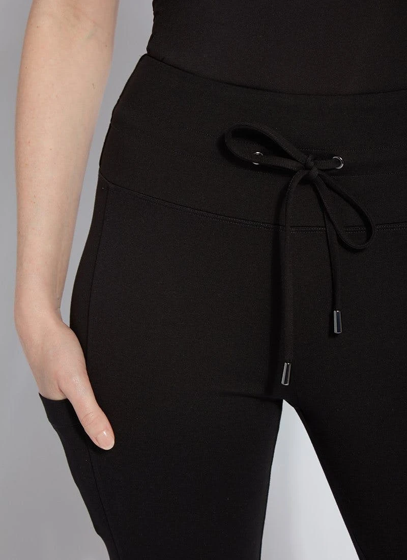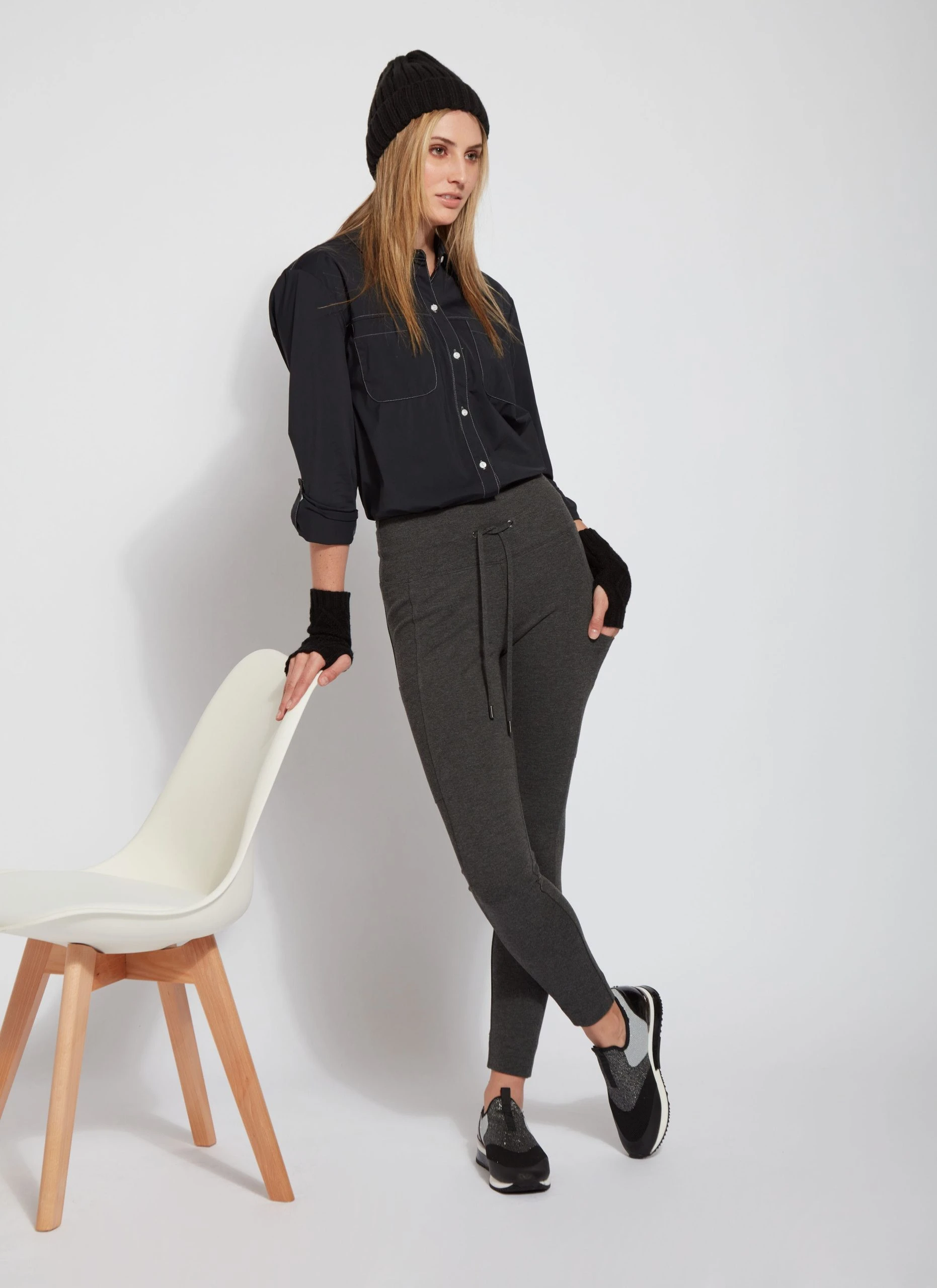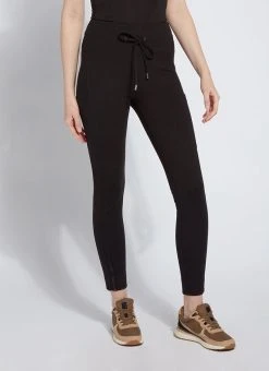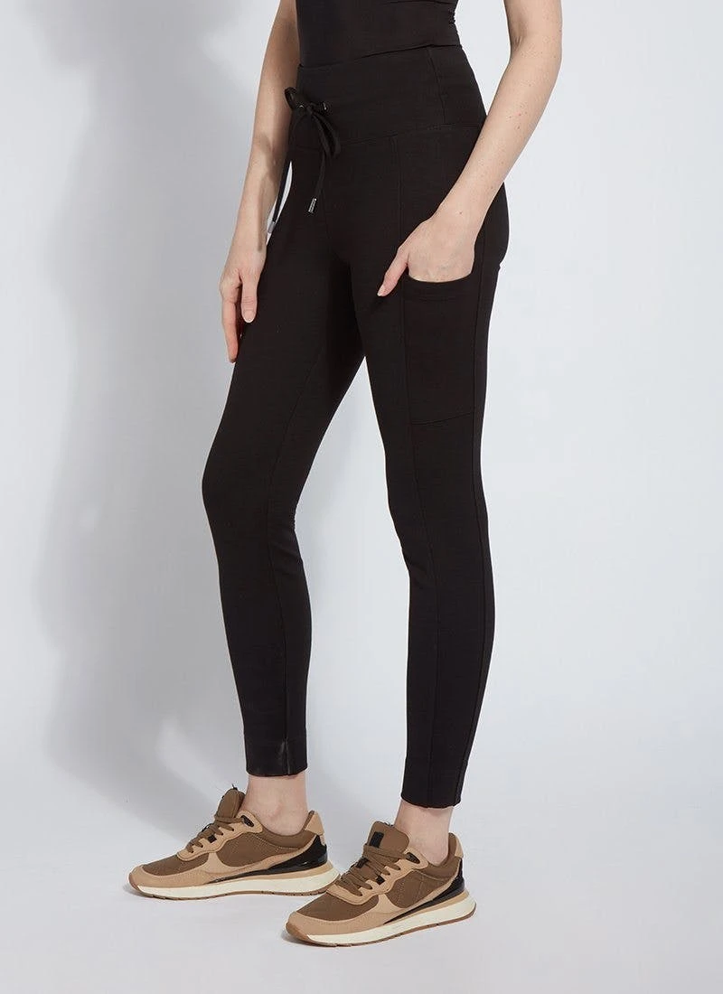 A hybrid between a legging and a jogger, The Premium Lounge Jogger offers a slimming, body-hugging fit with functional side phone pockets and front drawstring with shiny, gunmetal stoppers. Constructed using 4x-stretch Ponte, these jogger-leggings feature a signature concealed waistband, waist seam and wide hem facing. Wear them with a cropped sweatshirt and sneakers or tucked camo top and booties.