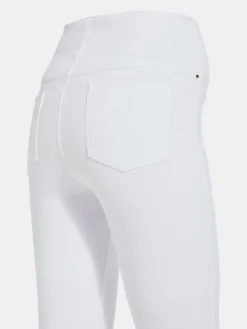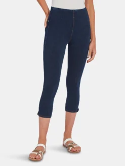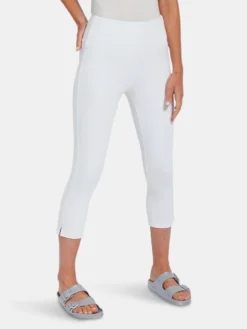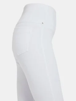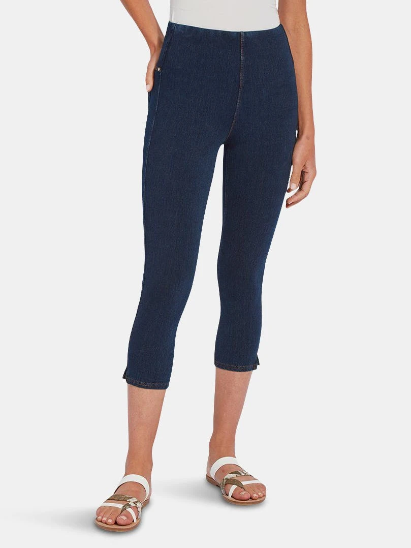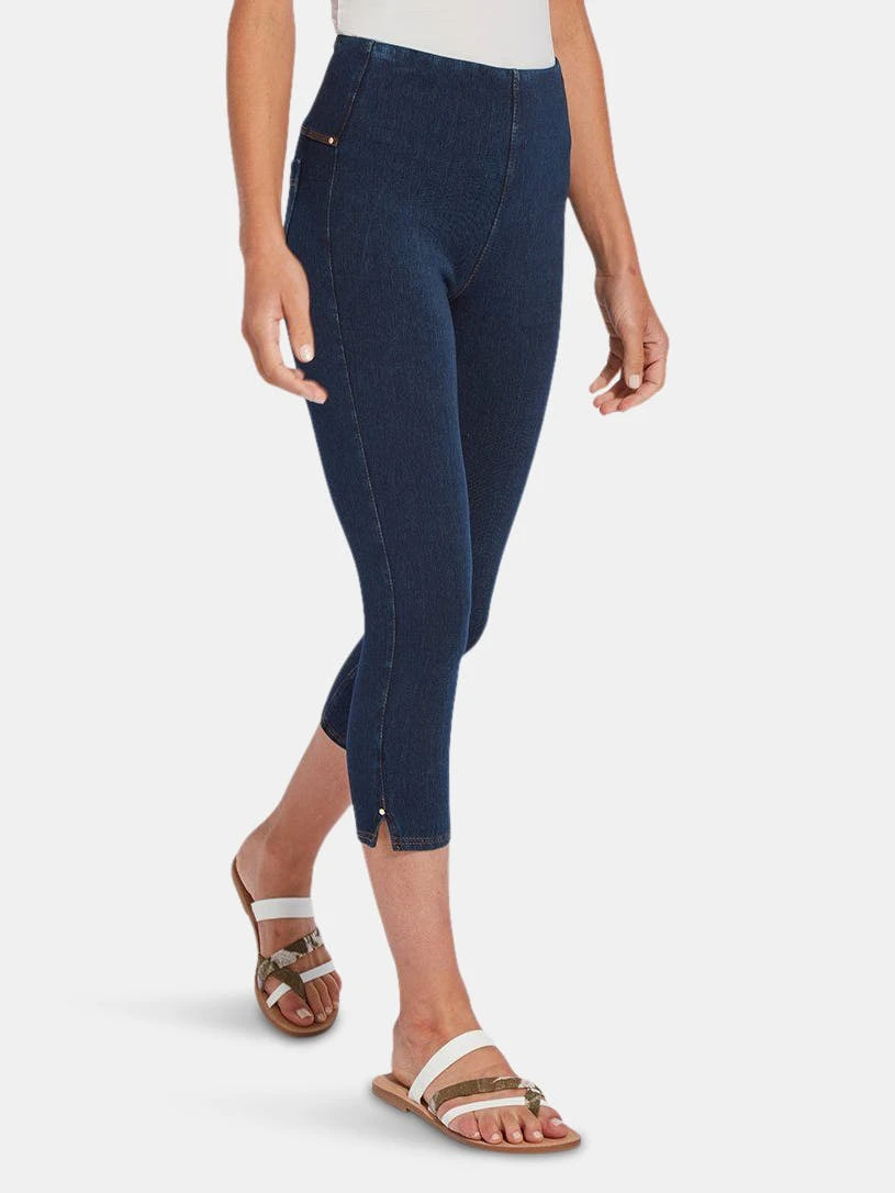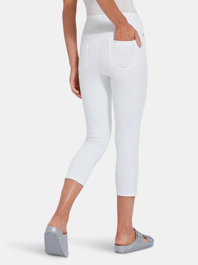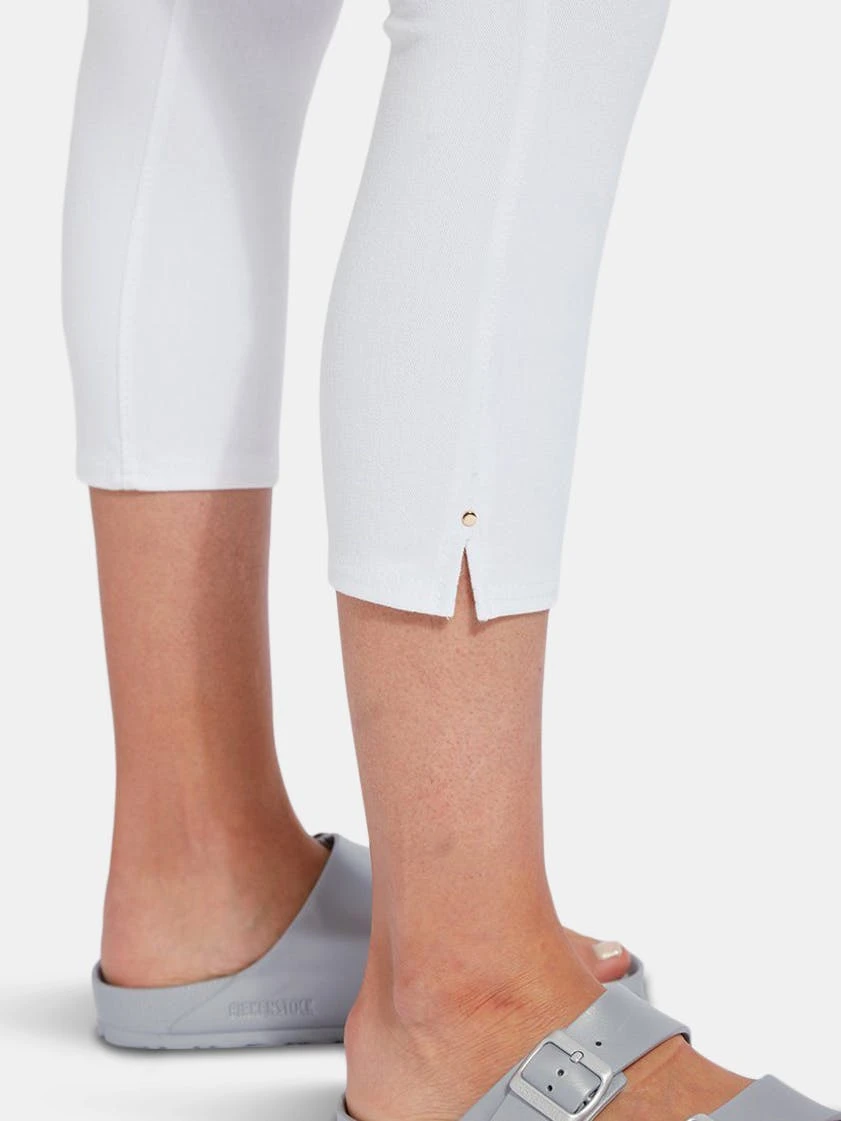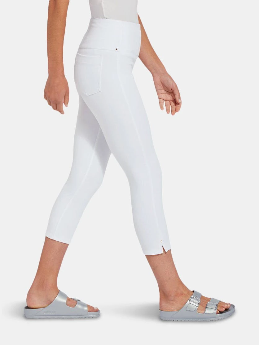 A foundational warm-weather essential, the toothpick capri is a body-hugging crop crafted from 4x-stretch “cool”-ing knit denim – a fabric made with an eco-friendly, synthetic nylon fiber that’s manufactured using recycled water and sustainable processes. The addition of this eco-friendly nylon creates a high-performance fabric that immediately cools skin on contact and continues to diffuse heat to keep skin cool and dry. These foundational bottoms offer a concealed patented waistband, side hem slits and strategically placed back pockets with shiny, light-gold metal studs. Pull them on with an airy top, tie up your sneakers, and head to the park with your favorite furry companion.”Cool”-ing knit denim To create lyssé’s “cool”-ing knit denim, we reinvented our traditional knit denim by removing some of the cotton, increasing the percentage of spandex, and adding an eco-friendly, synthetic nylon fiber that’s manufactured using recycled water and sustainable processes. The addition of this eco-friendly nylon creates a high-performance fabric that immediately cools skin on contact and continues to diffuse heat to keep skin cool and dry. “cool”-ing knit denim, which contains 31 percent eco-friendly nylon, retains its cooling effect even after multiple washes. Delivering comfortable 4-way stretch, moisture wicking and easy care, “cool”-ing knit denim is the perfect cooling fabric for hot summer days.