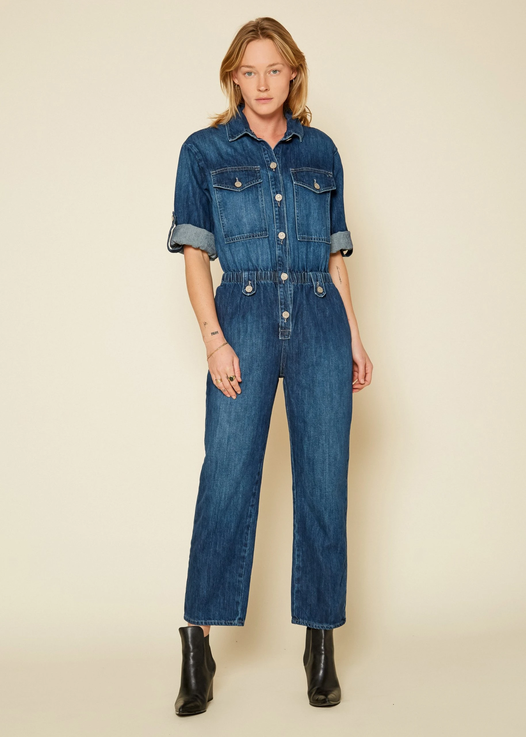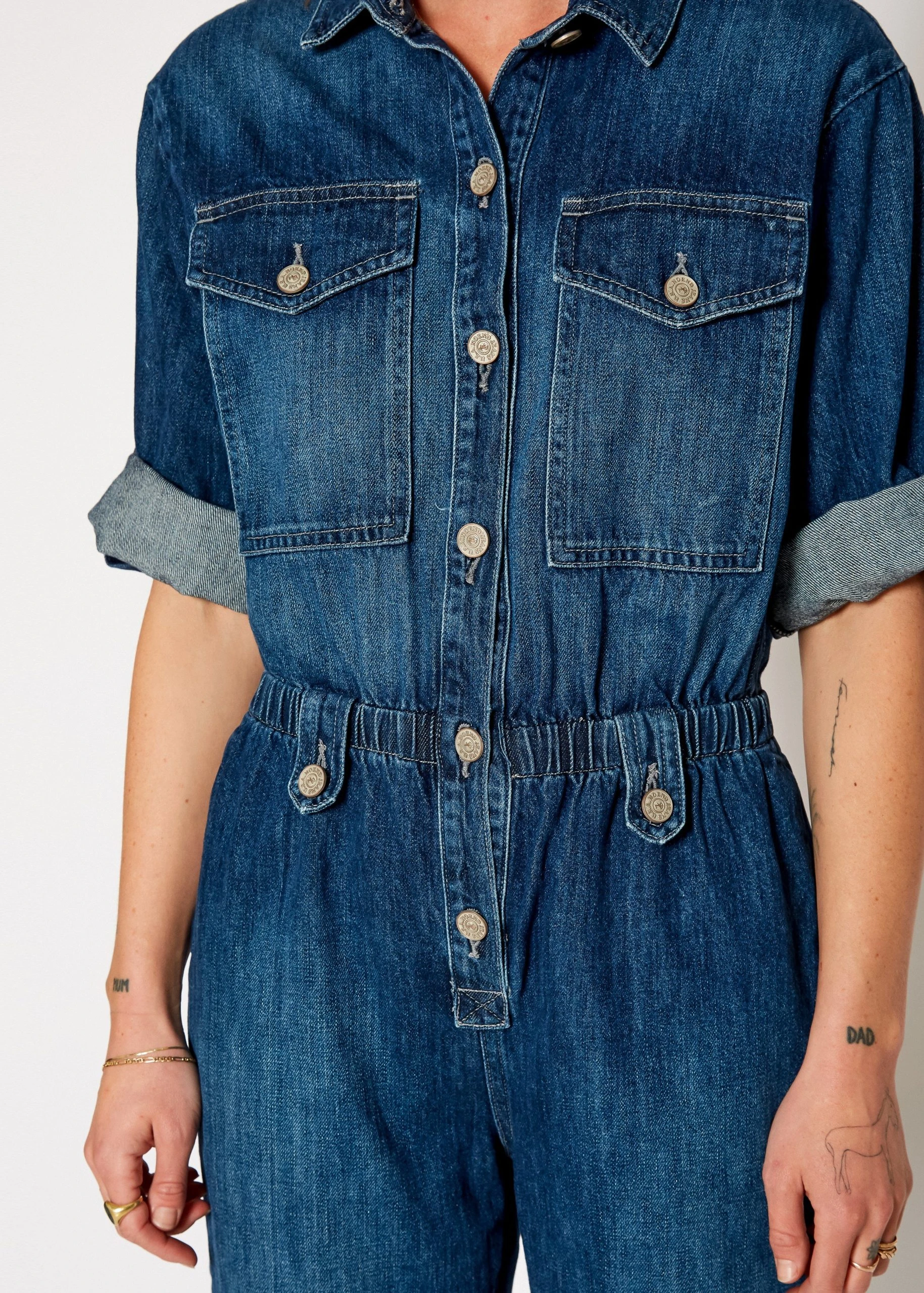 – Short Sleeve elastic waist jumpsuit- Gaffney wash- Fits true to size