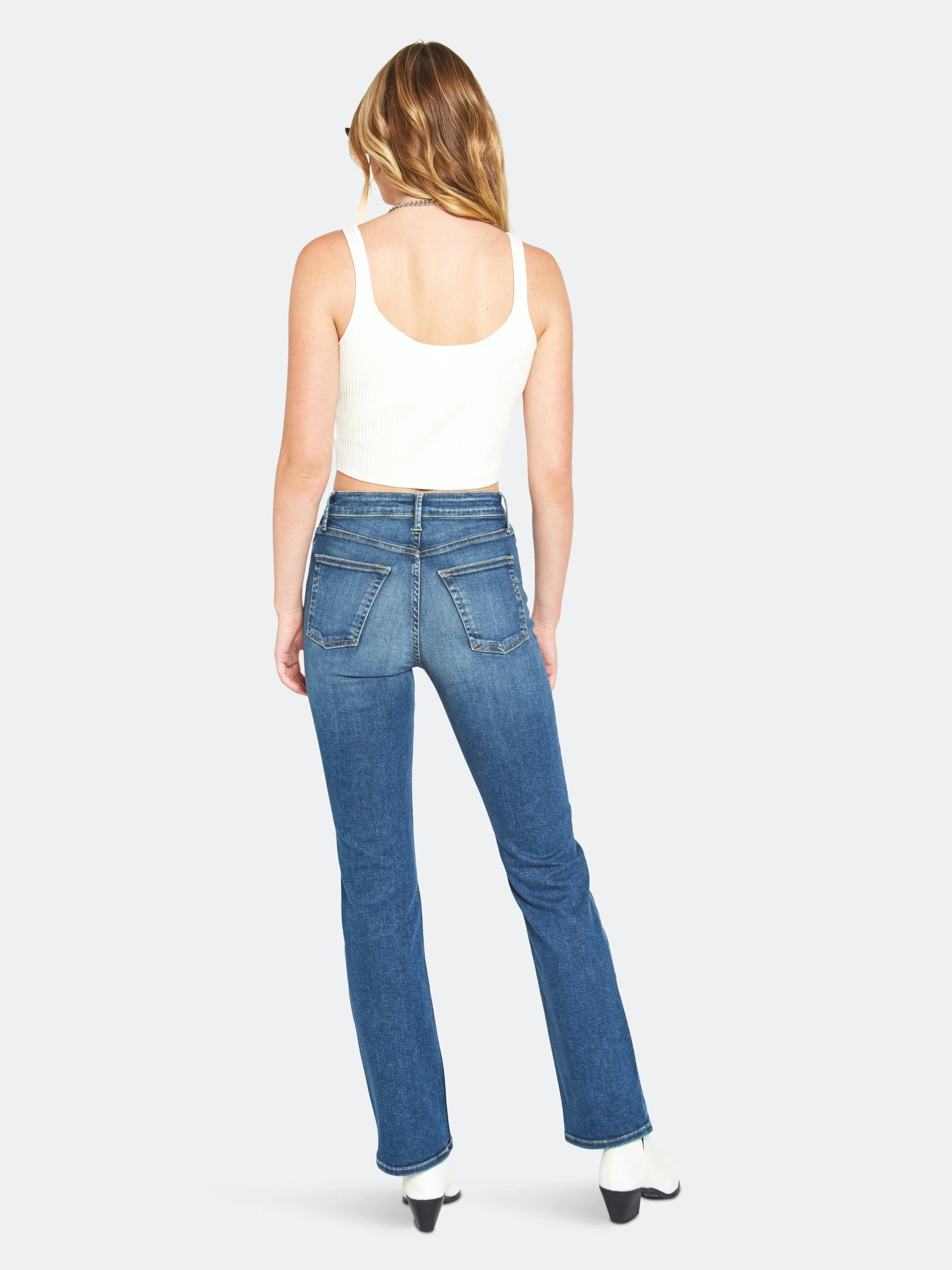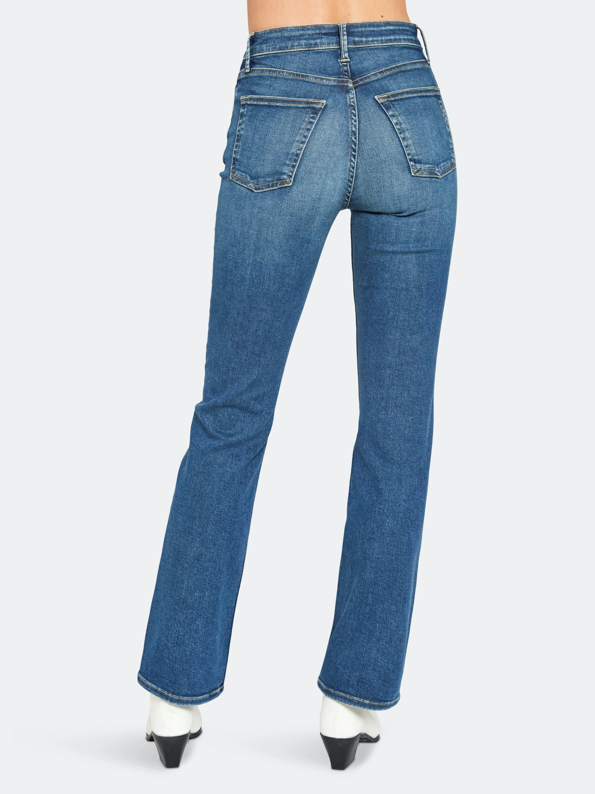 – High rise 5 pocket bootcut- Cordova wash- Size range: 24~31- Rise: 11″]- Inseam: 31″- Knee: 15″- Leg opening: 17″