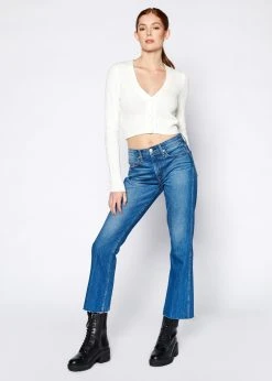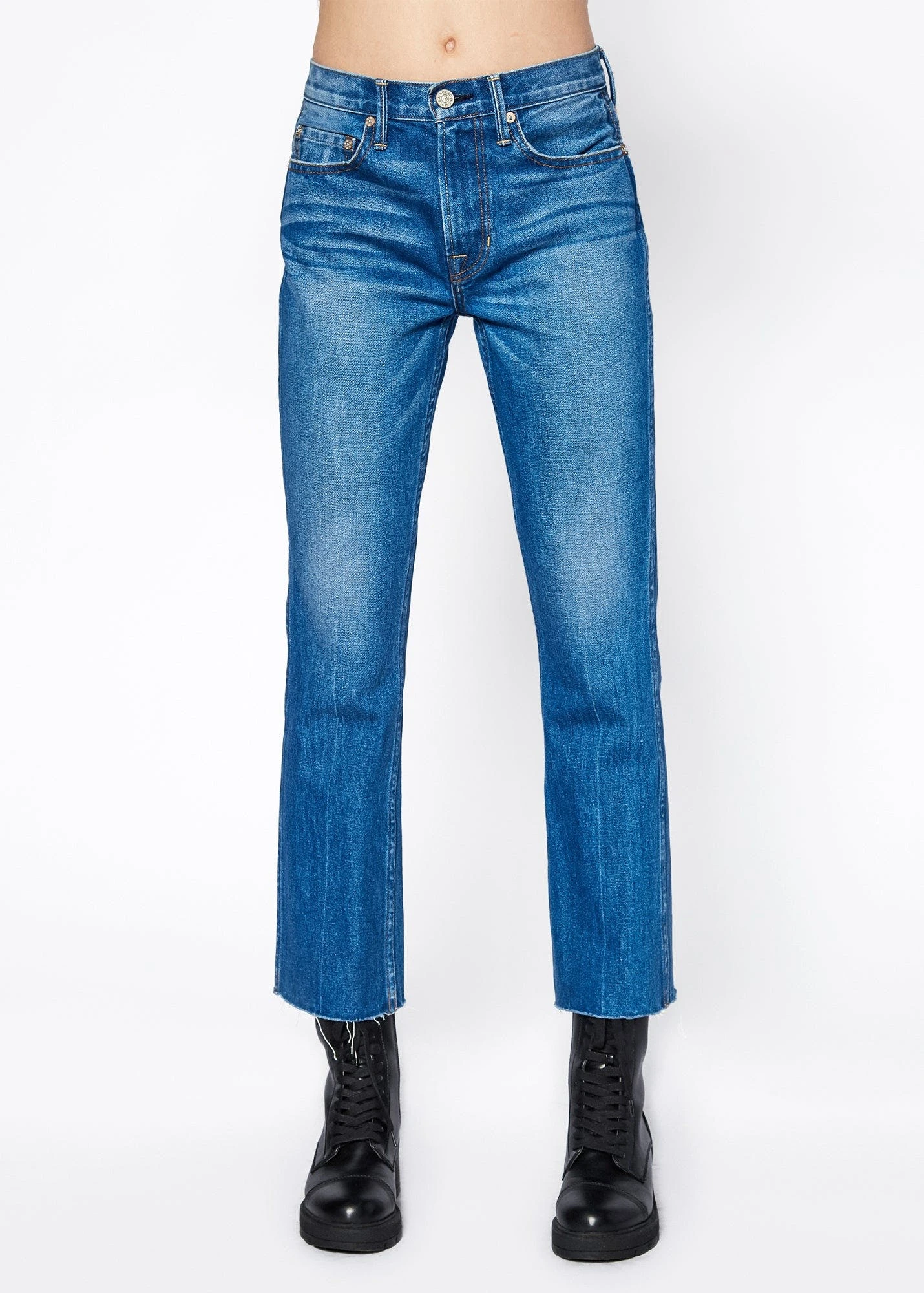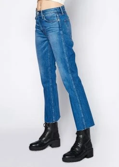 Farrah kick flare jeans in wisconsin. Kick flare in wrangler-inspired broken twill with cut-off hem.