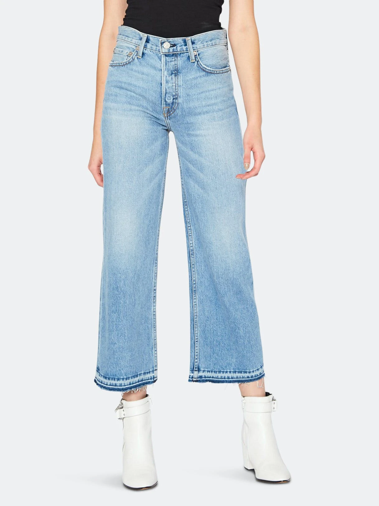 This fit offers a flattering silhouette with a unique style. Offering a high-rise and wide-legged cropped fit.