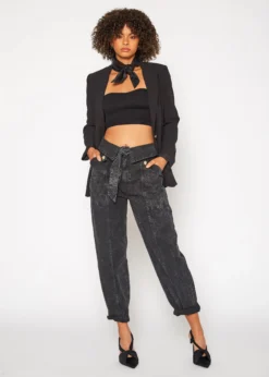 – Utility pants with fold-over waistband- Rise: 12 ½”- Inseam: 27 ½”- Knee: 21”- Leg Opening: 13”