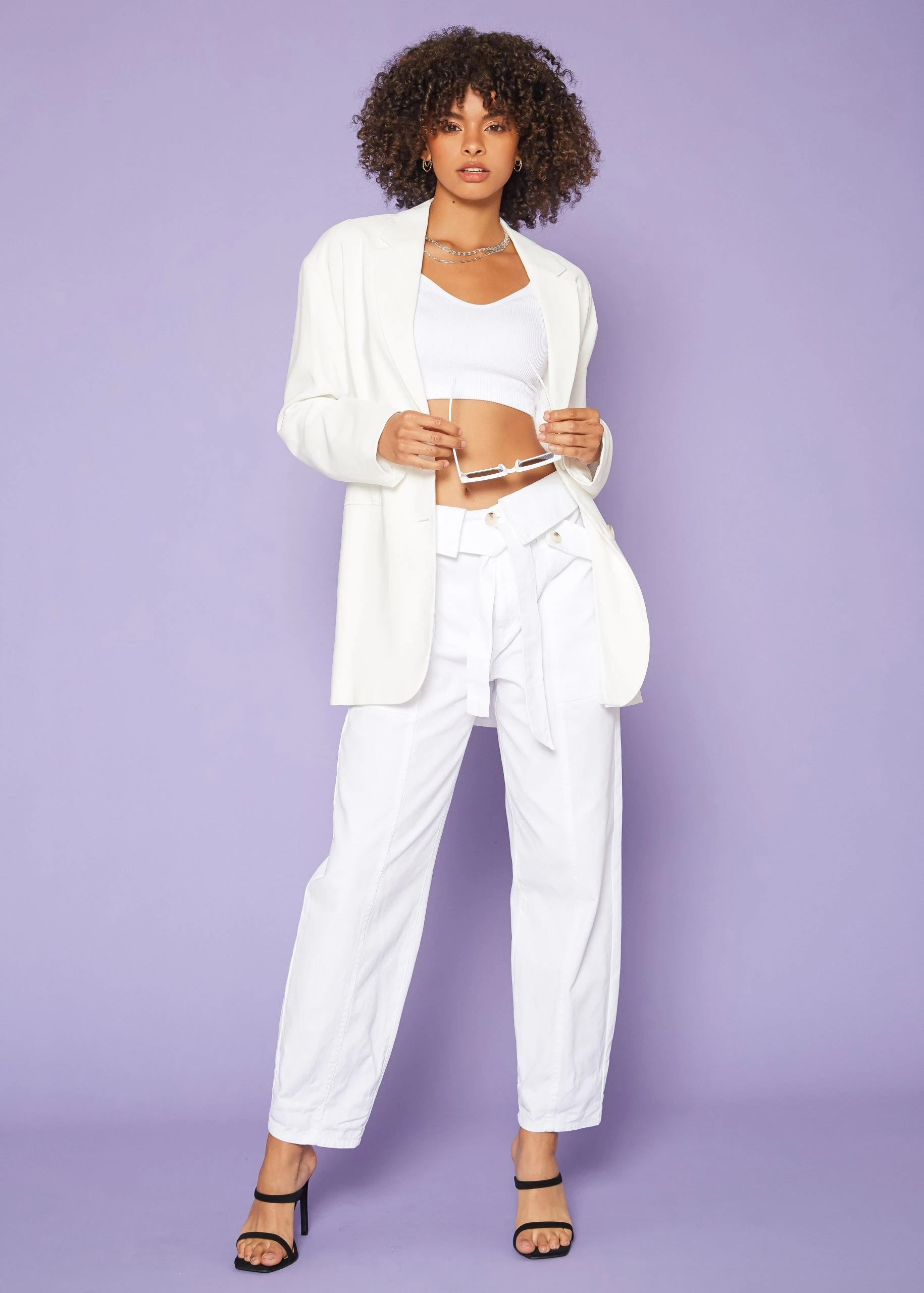 – Utility pants with fold-over waistband- Rise : 12 ½”- Inseam : 27 ½”- Knee : 21”- Leg opening : 13”