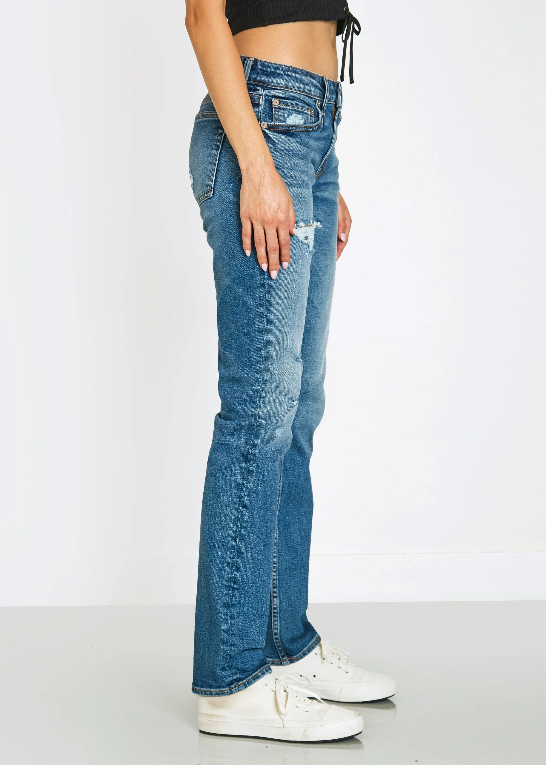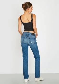 Designed with a low-rise waist and relaxed fit, Ella updates the Mom’s jeans with a nod to the 90’s feel in a solid 12oz denim.