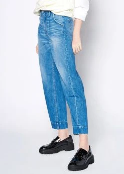 – 90’s Pleated comfort crop with cut off hem- Rise 12″- Inseam 27″- Knee 19″- Leg opening 14″