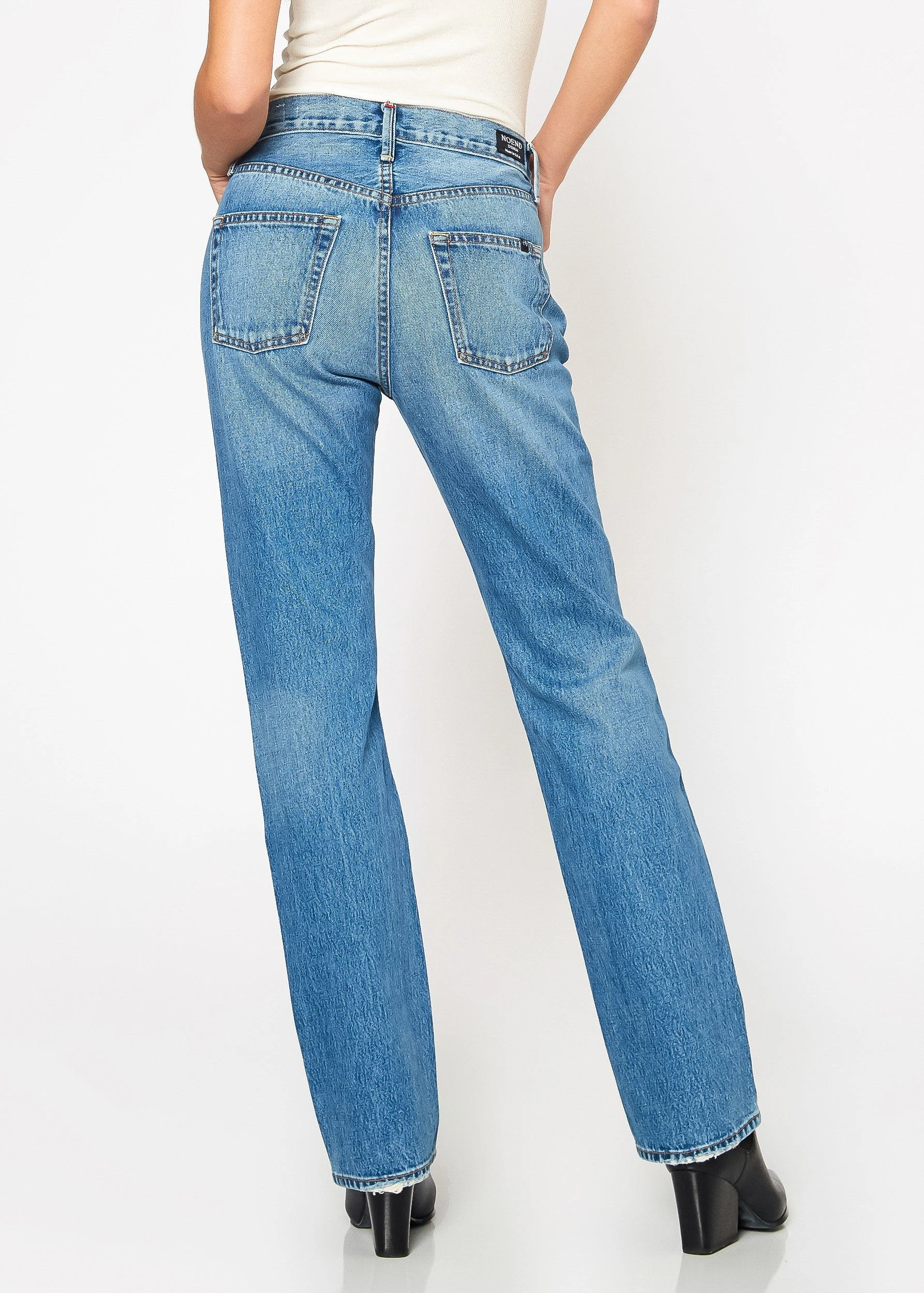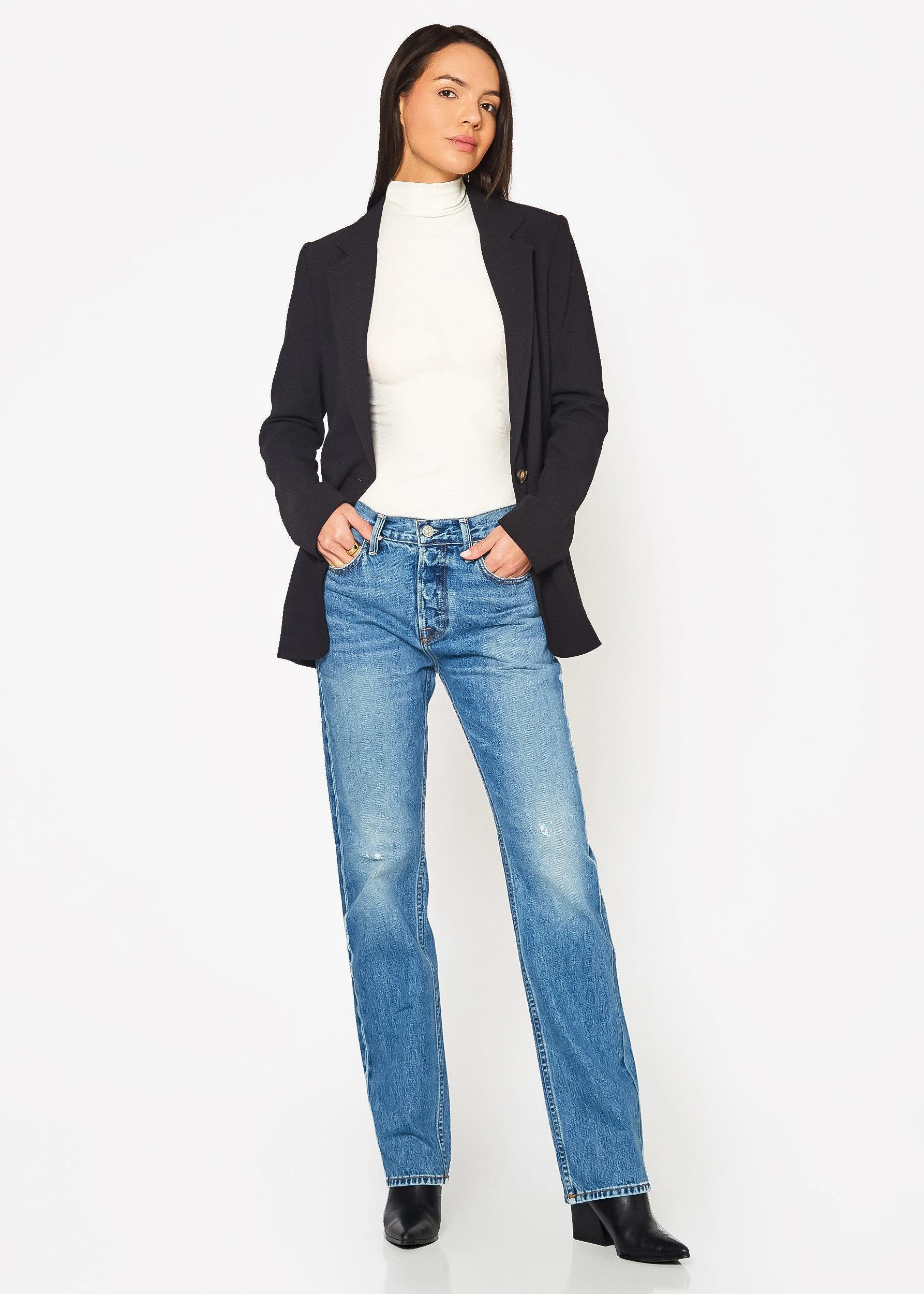 Our hi-rise slouch boyfriend fits loosely through the hip and thigh with a straight leg.Recommend sizing up.