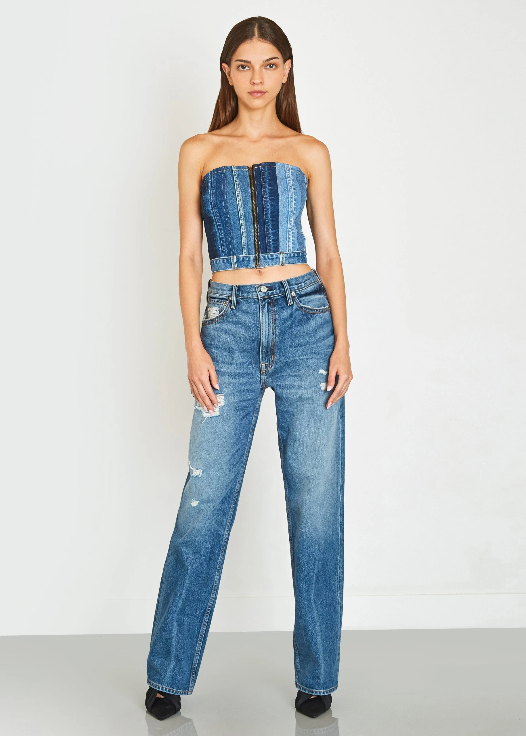 River High Rise 5 Pocket Jeans feature a wide leg with a slightly frayed hem. This is your new favorite jeans providing alegs-for-days look.