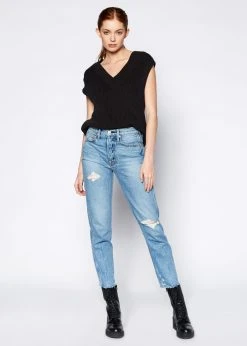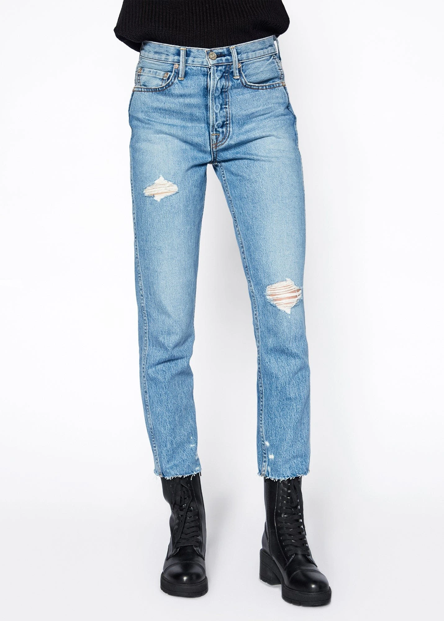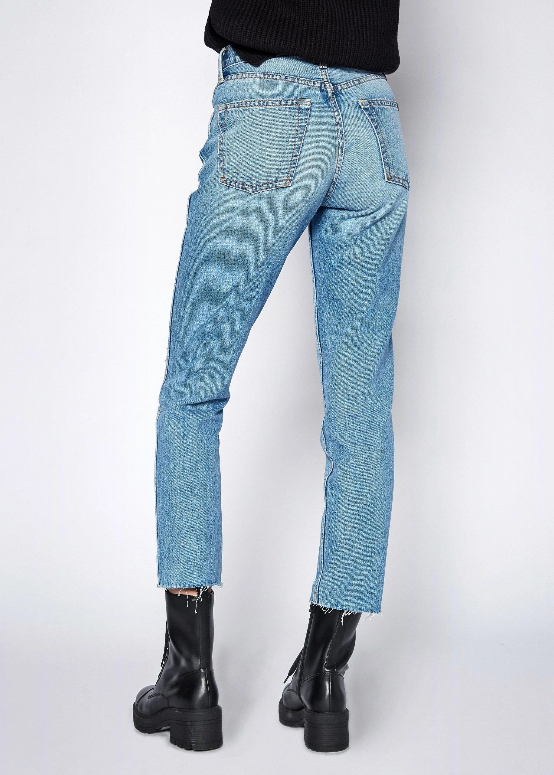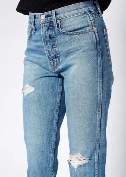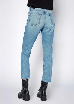 – Slim Straight Crop- Cut-off hem & button fly- Rise 10 3/4″- Inseam 27″- Knee 14 3/4″- Leg Opening 13 1/4″- Made in USA
