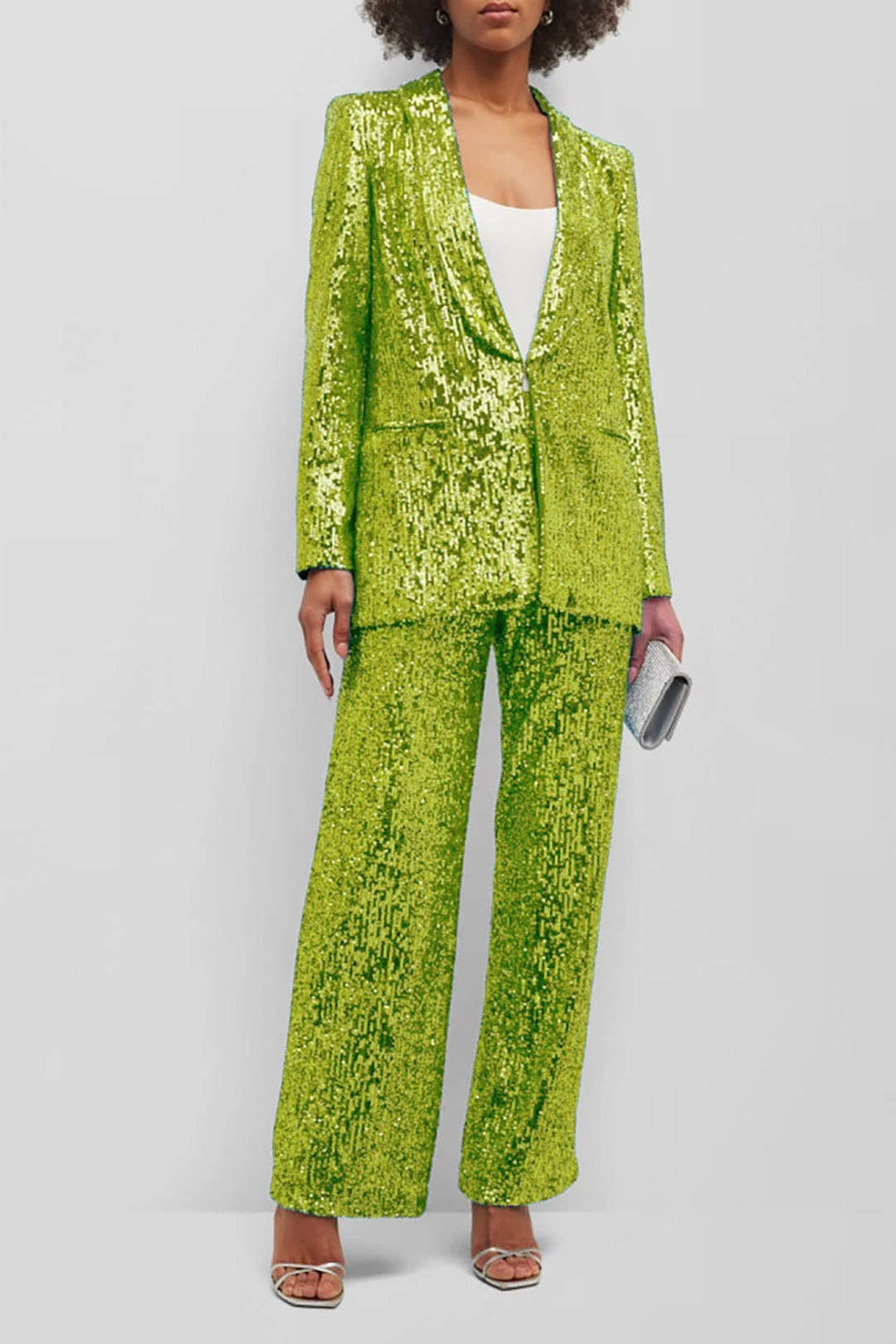 You’ve been the center of attention this whole time. The Starling is here to make that even more obvious. These sequin bottoms come in lime and should be sized down for a more snug fit. All you need are some silver pumps and The Starling blazer to match. Can it be cocktail hour already?Pair The Starling Lime Sequin Pant with the starling lime sequin blazer for a matching suiting set.