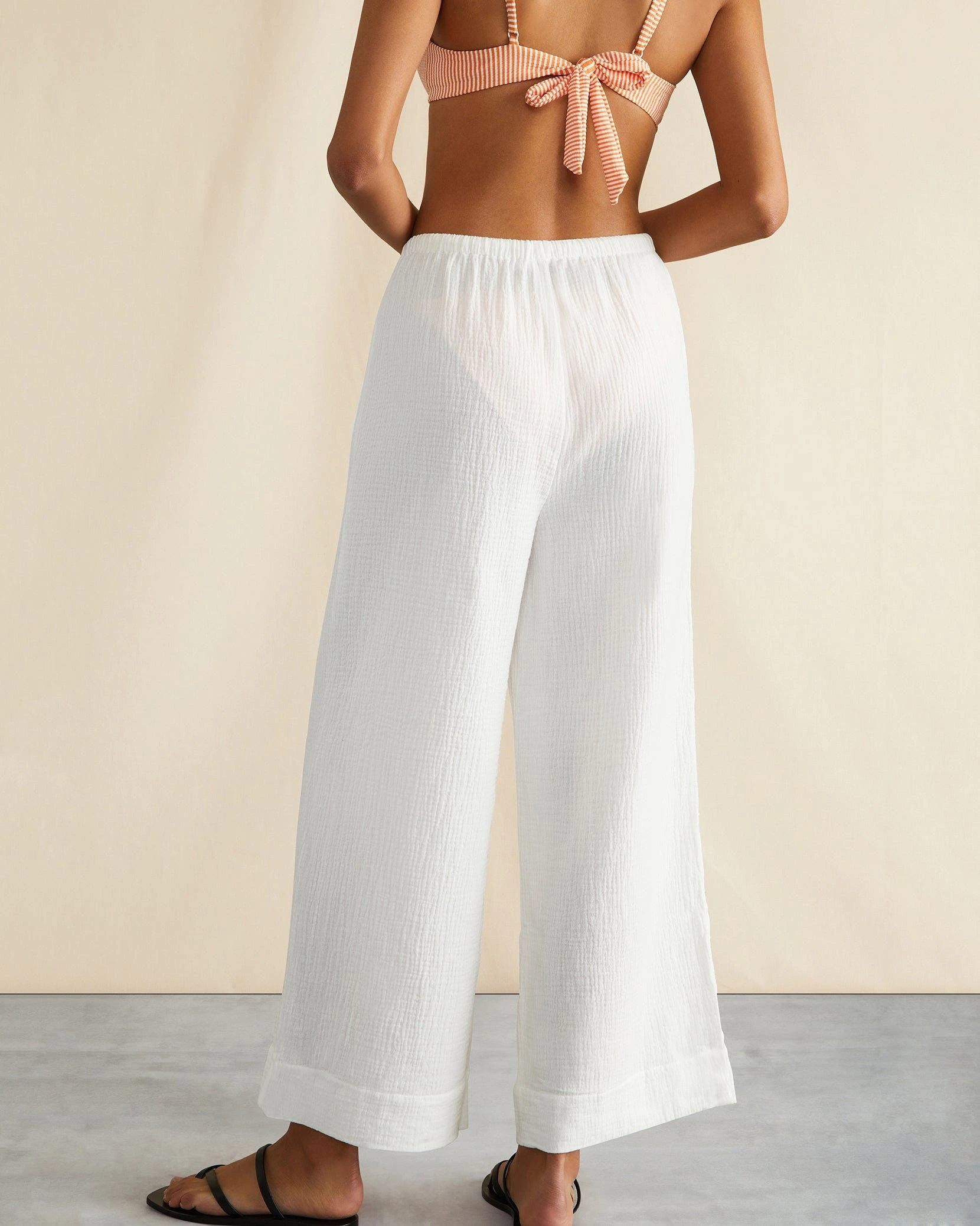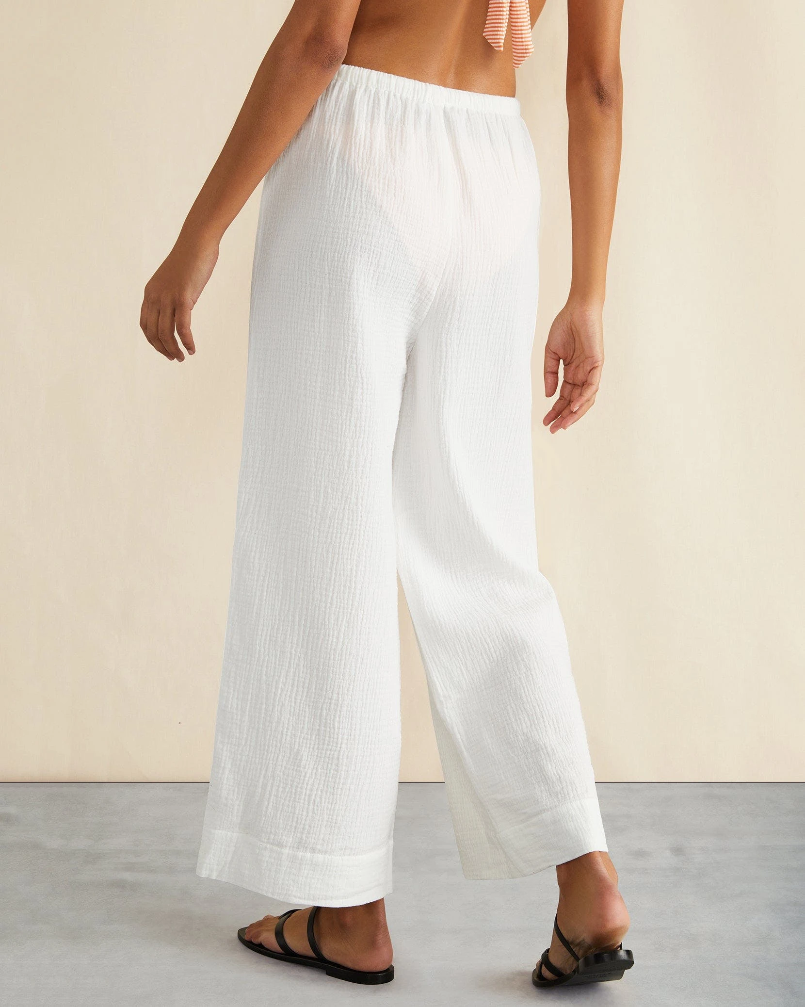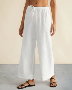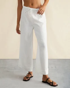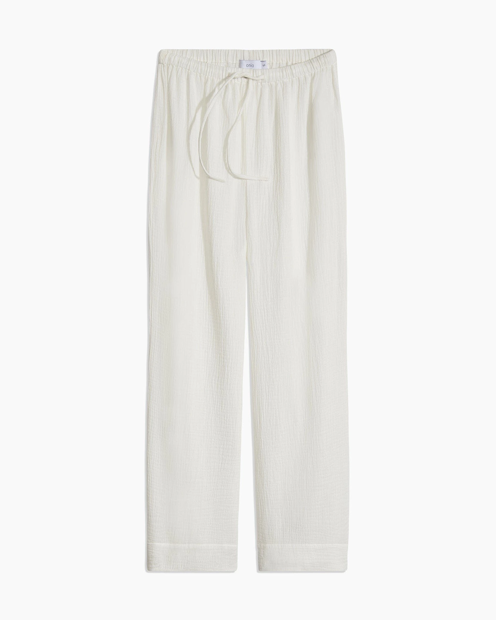 An easygoing style, our high-rise drawstring pant is cut for a relaxed fit with a comfortable wide leg. adjust the embedded string ties to wear the pair higher or lower on the waist.