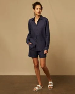 Onia’s high-waisted linen boyfriend short is designed to be styled any number of ways — in a set opposite the matching button-down, with swimwear or everyday basics. The pair offers a loose fit with crisply tailored finishes including belt loops, an exposed button fly and slit pockets.