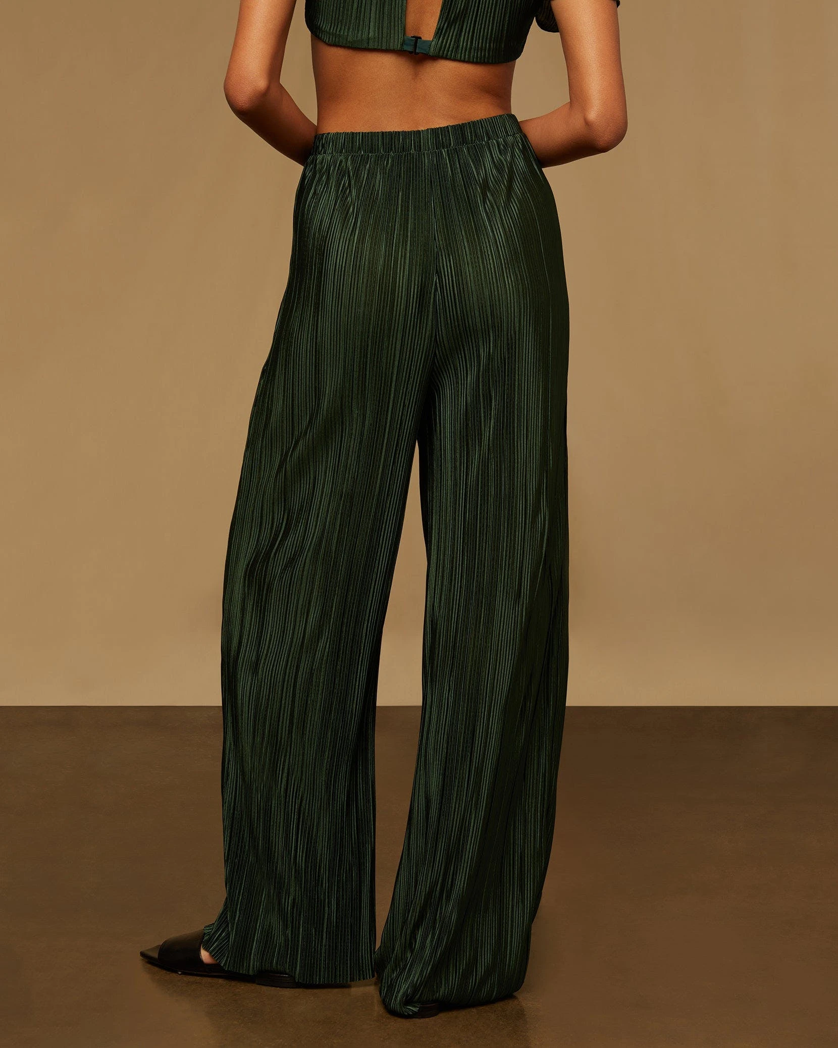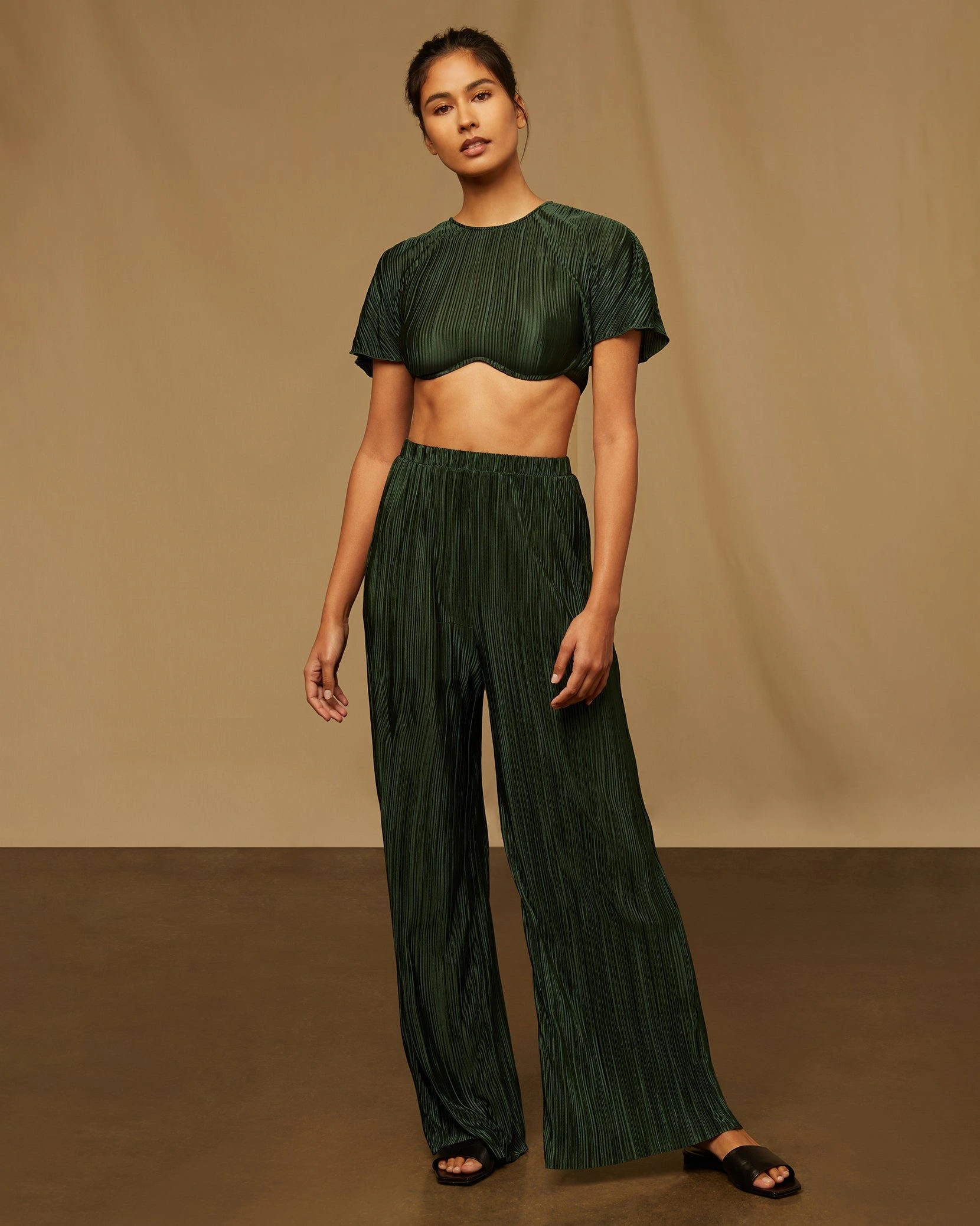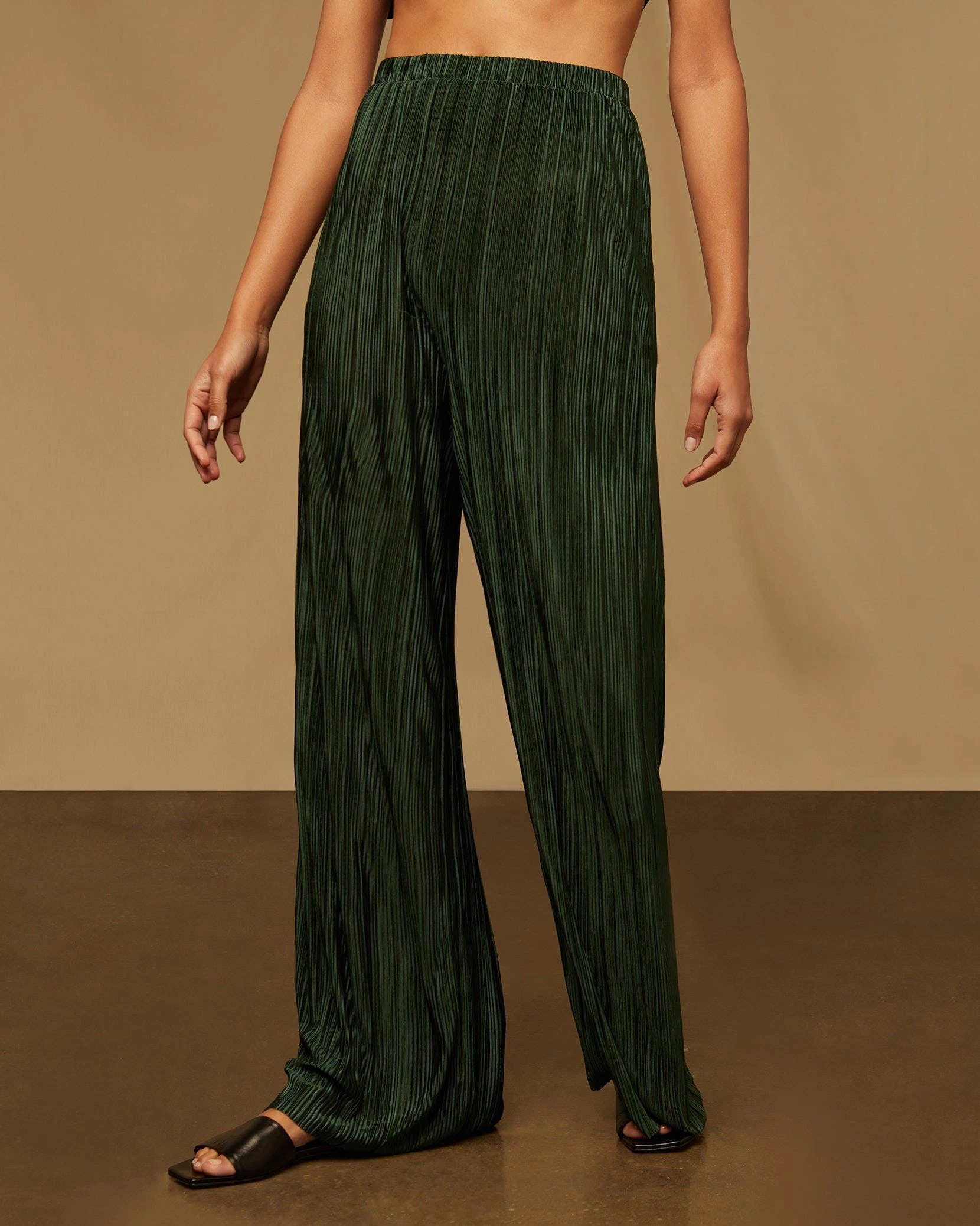 Tightly pleated in plissé fabric, this Pull On Pant has a high rise featuring a stretch waistband and a breezy, wide-cut leg. Pair it back to the matching Underwire Top for a coordinated resort look.The Plisse Pull On Pant pairs well with the Plisse Underwire Top.