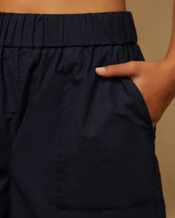This pull-on Home Short is made in soft cotton poplin with an elasticized high waist and slash patch pockets.