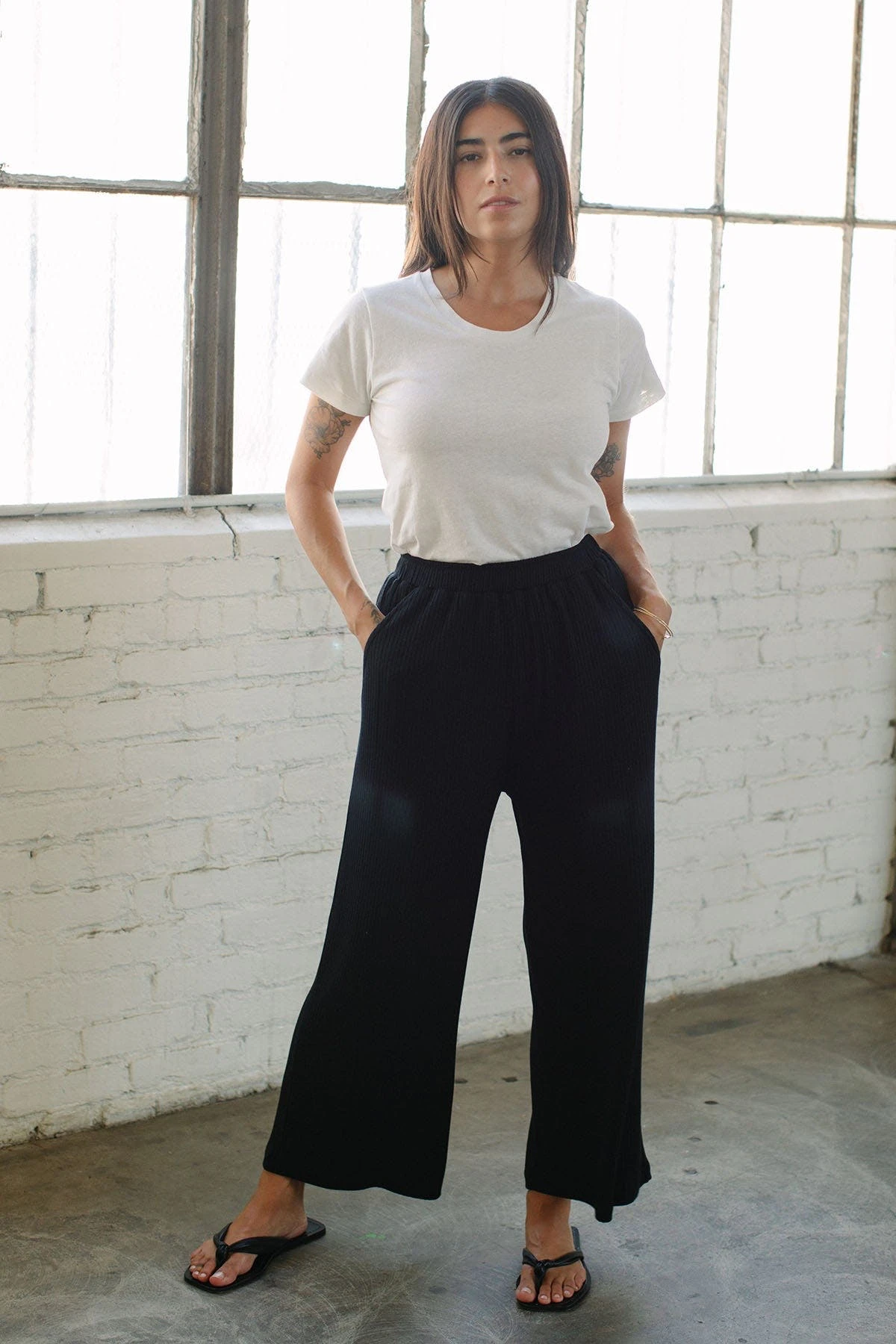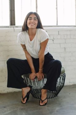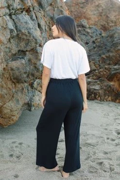 If you love this linen Bastien pants you will love the Rib Bastien! This classic wide-leg fit with deep pockets and an elastic waist, reimagined in this luxe ribbed fabric. Cozy and soft – wear them back to the matching bralette and sandals or with your favorite white tee and sneaker.