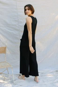 Cut from our luxurious rib knit and designed for a relaxed fit, the remy jumpsuit features cropped wide legs and functional front pockets. This bra-friendly style is finished with a button closure and keyhole detail.