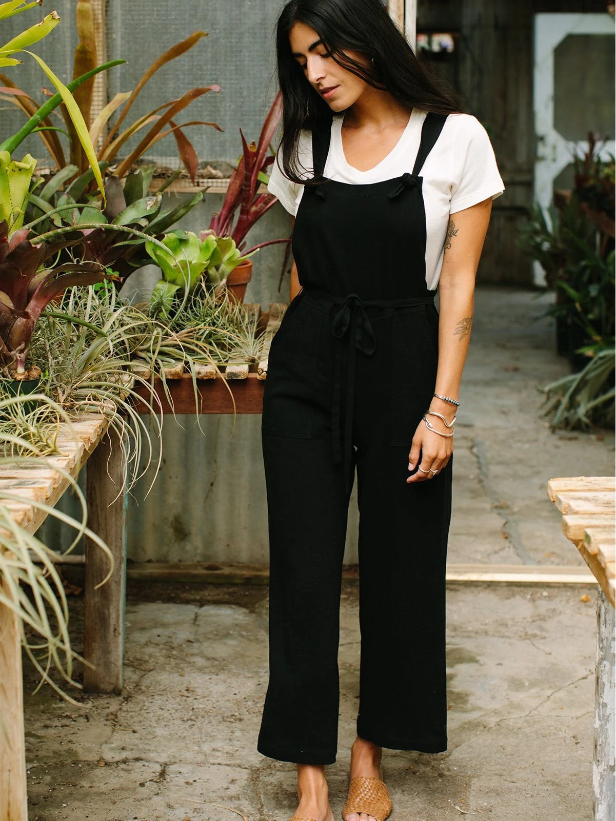 Overalls are always a favorite! These overalls are cut from our signature linen blend, making them drapey and comfortable. They feature adjustable straps (just tie the knot where you like it!), a detachable belt to cinch it all in, and straight legs. Pair with our hemp Delia tee for a perfect casual look!