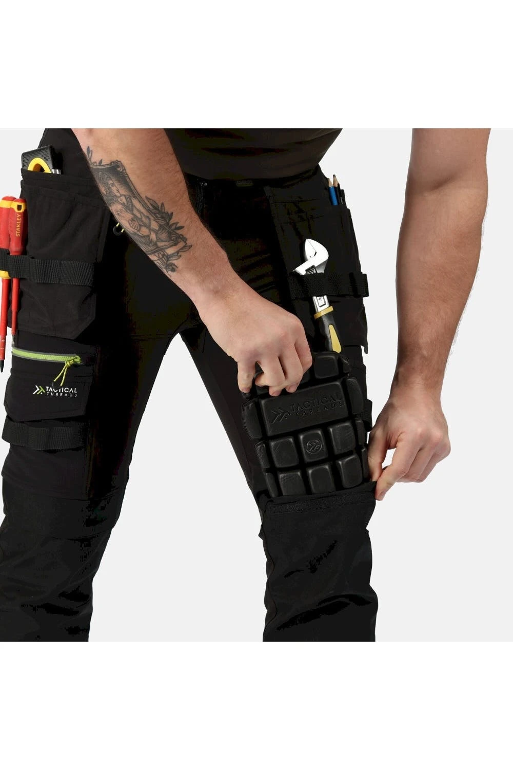 Durable, stretchy and weather resistant, this infiltrate stretch trousers provide the perfect legwear for when you’re hard at work. Featuring stretch fabric, the men’s work trousers will move with you. they come with a water-repellent coating to prevent light rainfall and splashes getting through. The cargo work trousers are finished with detachable holsters and multiple pockets.
