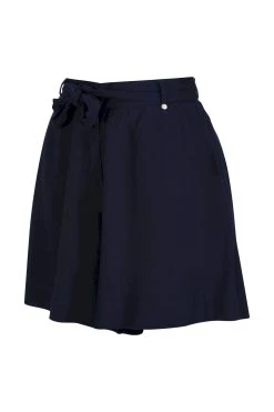– 75% Viscose, 25% Linen.- Fabric: Coolweave, Denim Look, Garment Washed, Linen.- Design: Logo, Plain.- Pockets: 2 Back Pockets.- Fabric Technology: Breathable, Soft.- Tie Belt.- Length: Above Knee.- Waistline: Paper Bag.