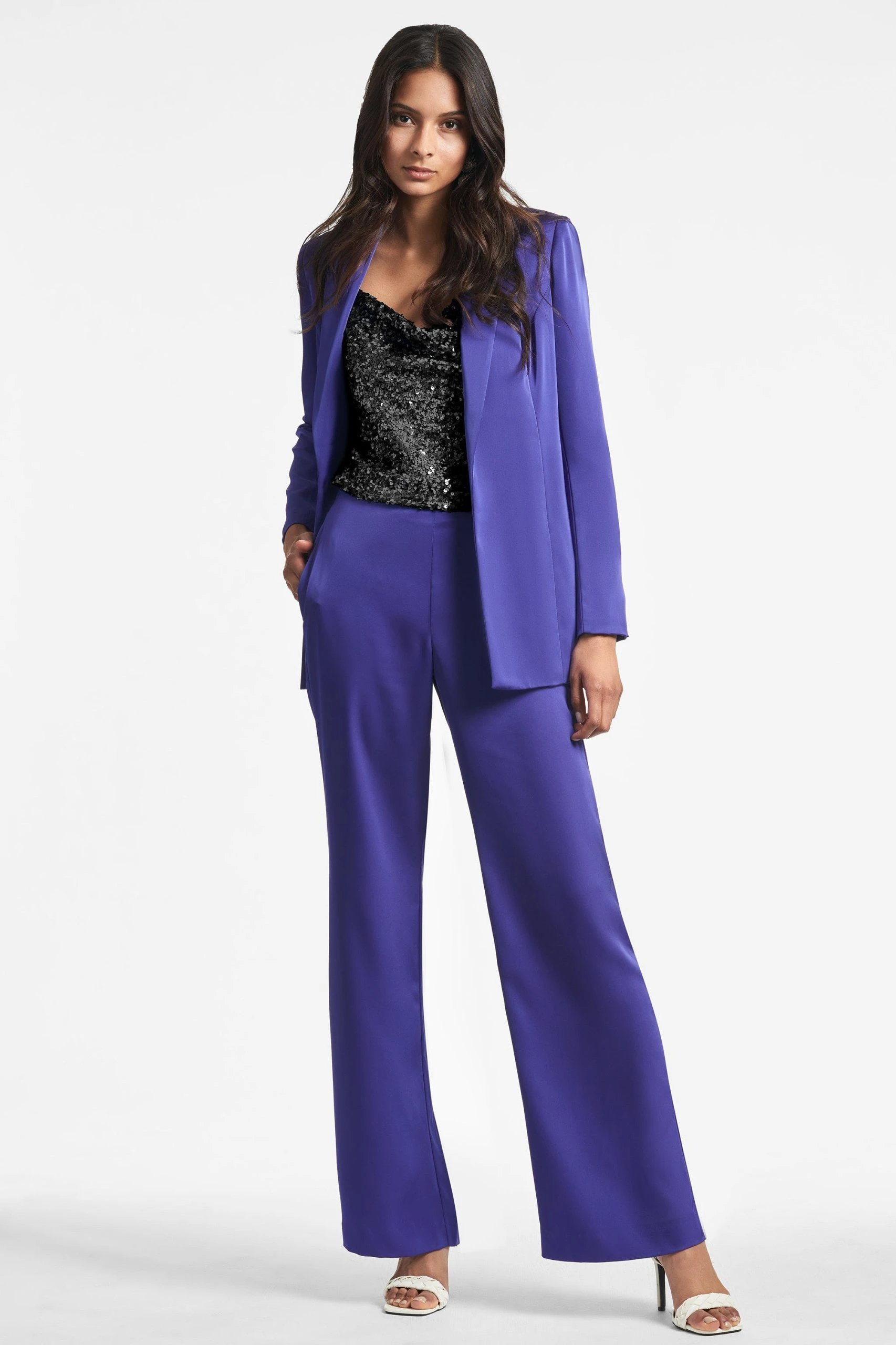 Alli is the ideal evening pant. An easy, chic wide-leg trouser shape is featured in the satin crepe for an amazing drape. The flat front pant has concealed elastic at the back for a more comfortable fit. Perfect back to your favorite “date-night” tops or and knits.Sachin and Babi believe in celebrating every day, dressing with joy, and creating clothes that inspire beauty and confidence. Here’s to the moments and the moments that make us.