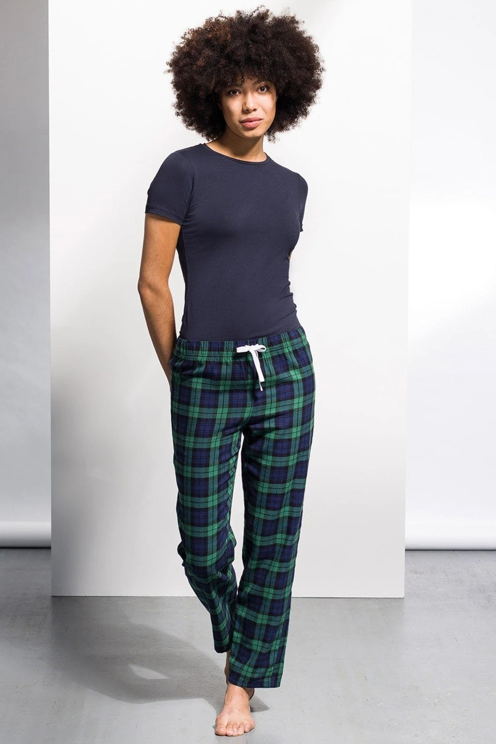 – Woven tartan lounge pants with plain hem.- Full elasticated waist with contrast mock drawcord.- Tear-out label.- Washing instructions: do not bleach.- Do not tumble dry.- 1 dot iron.- Do not dry clean.- Materials: 100% Cotton flannel twill weave..- Gender: Women