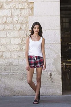 – Womens retro look shorts with contrast white binding and draw cord.- Features an elasticated waistband for a comfortable fit.- 100% cotton.