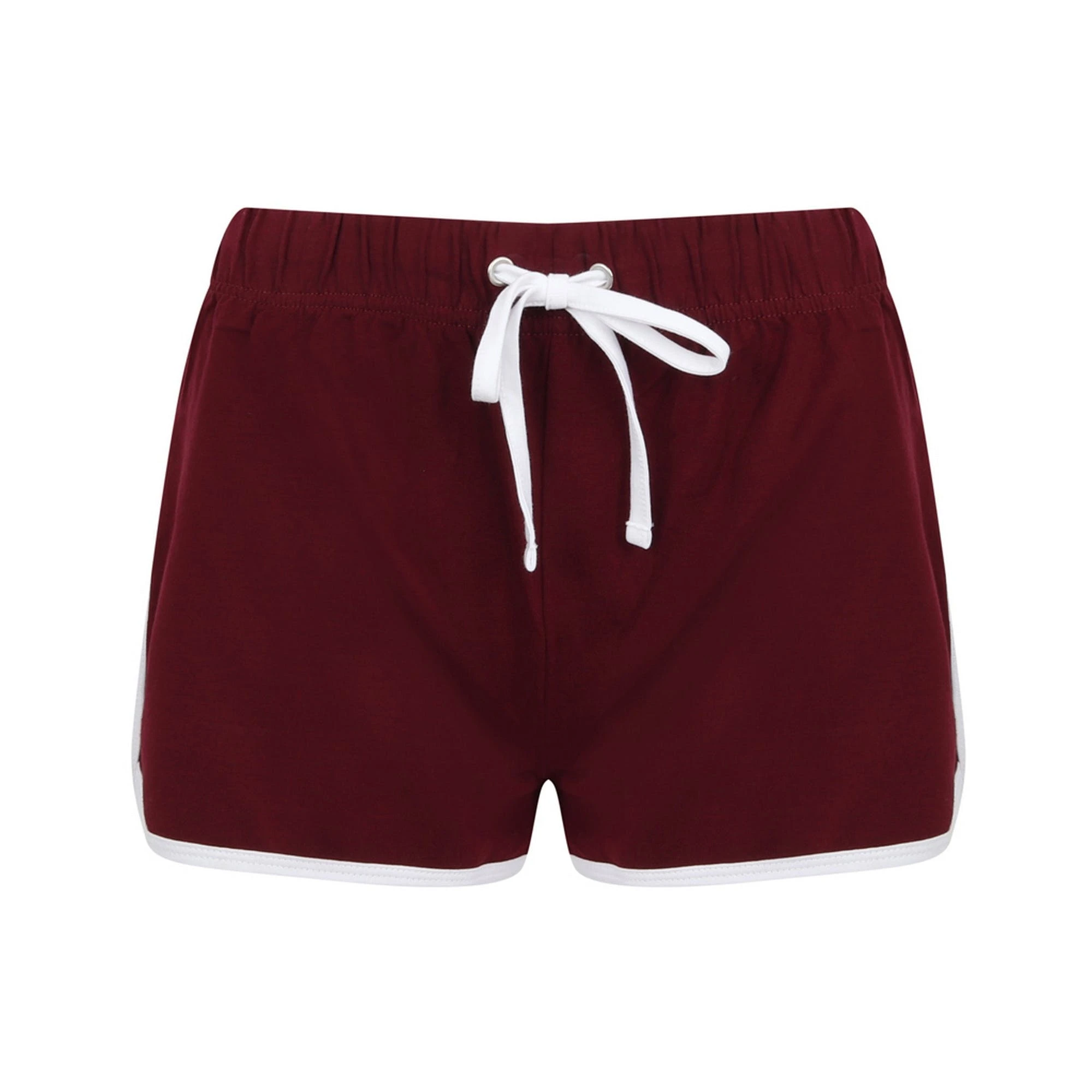 SKINNI FIT Womens/Ladies Retro Shorts (Burgundy/White)