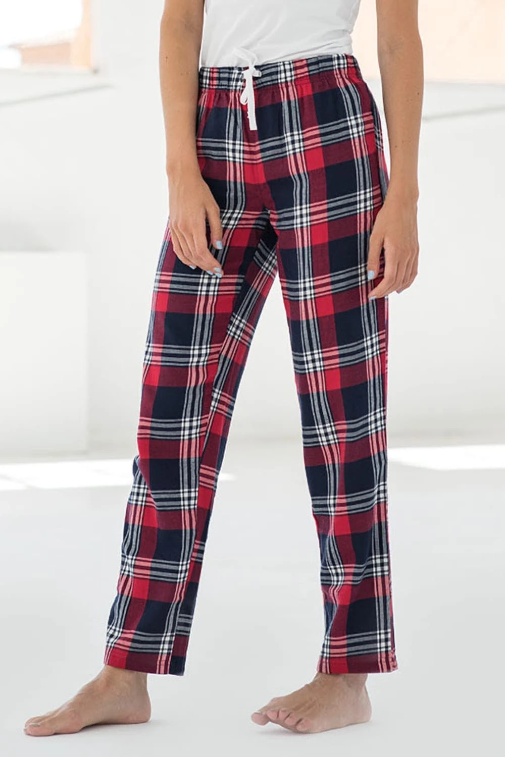 SKINNI FIT Womens/Ladies Tartan Lounge Pants – Red/Navy Check