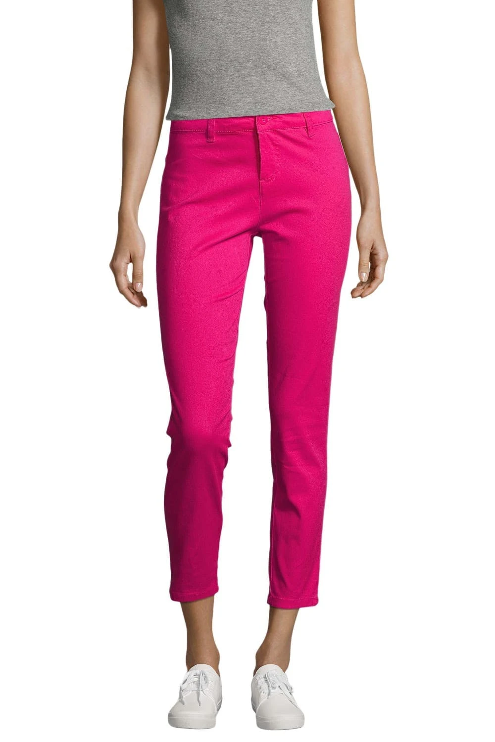 – Flat front.- Zip fly with button over.- Belt loops.- 7/8 length.- Two rear mock jetted pockets.- 98% Cotton Twill/2% Elastane..- Gender: Women