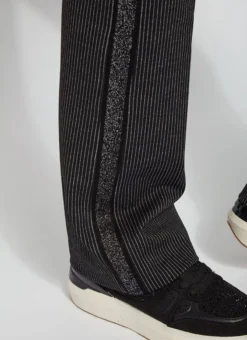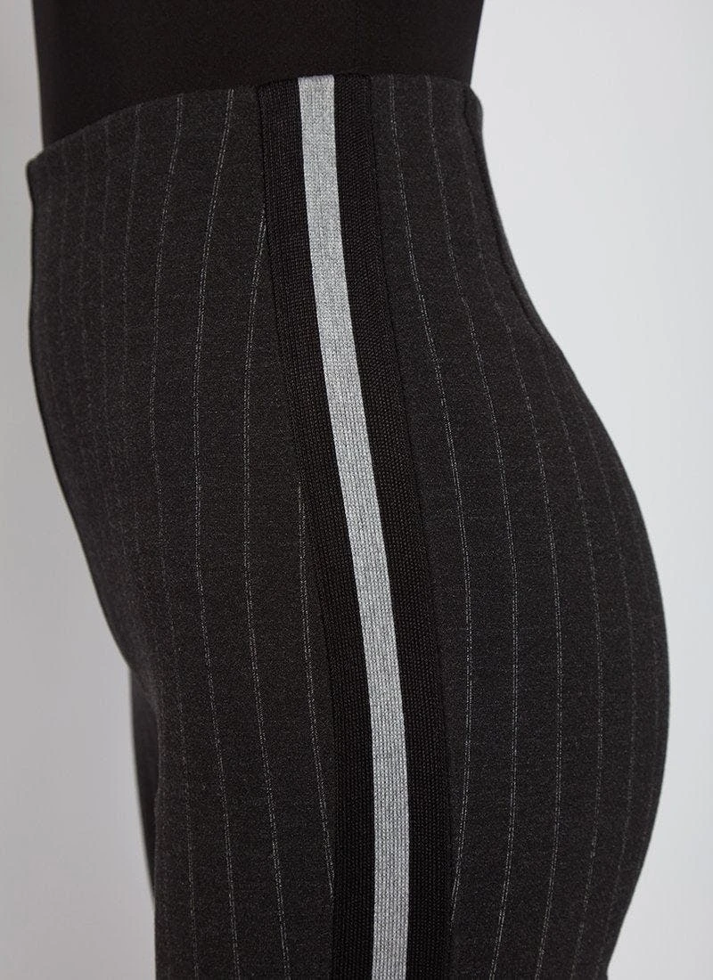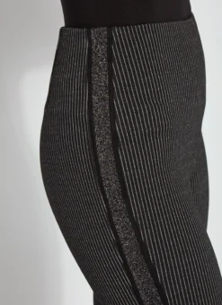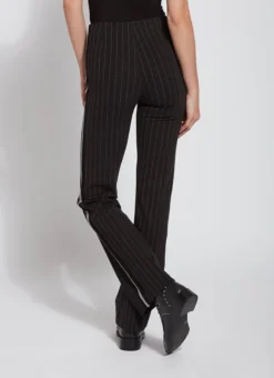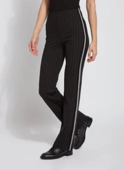Skimming the hips and thighs before falling into fit-and-flare leg, the Striped Elysse Pant Pattern features a concealed patented waistband, 4-way stretch Ponte Jacquard fabric, front pin tucks, side pinstripes with trim tape, and classic styling. Created using a tightly woven Ponte Jacquard, these work or leisure pants feel snugger than Lysse’s Ponte version, so size up if you’re in between sizes. Showcase them, in York Pinstripe, with a fitted mock sweater, stretch denim blazer and heeled leather mules.