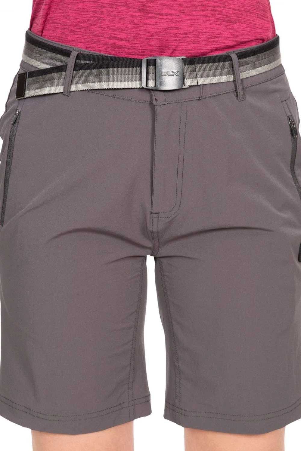 The appleton women’s shorts boast expert DLX stretch fabric technology in a knee-length design featuring an elasticated waist with button and fly front fastenings 2 front zip pockets a rubberised logo stamp at the side and come equipped with a detachable striped webbing belt with adjustable buckle fastening. Suitable for walking hiking trekking travel and casual wear these appleton shorts are designed for life in extremes. Keep up your wardrobe with your adventures in DLX.