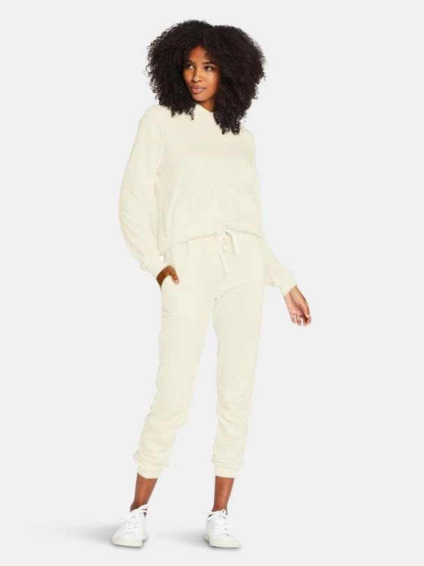 A classic jogger with gathered hems and drawstring waist for an adjustable fit. Styled with the Emery Fleece Hoodie.